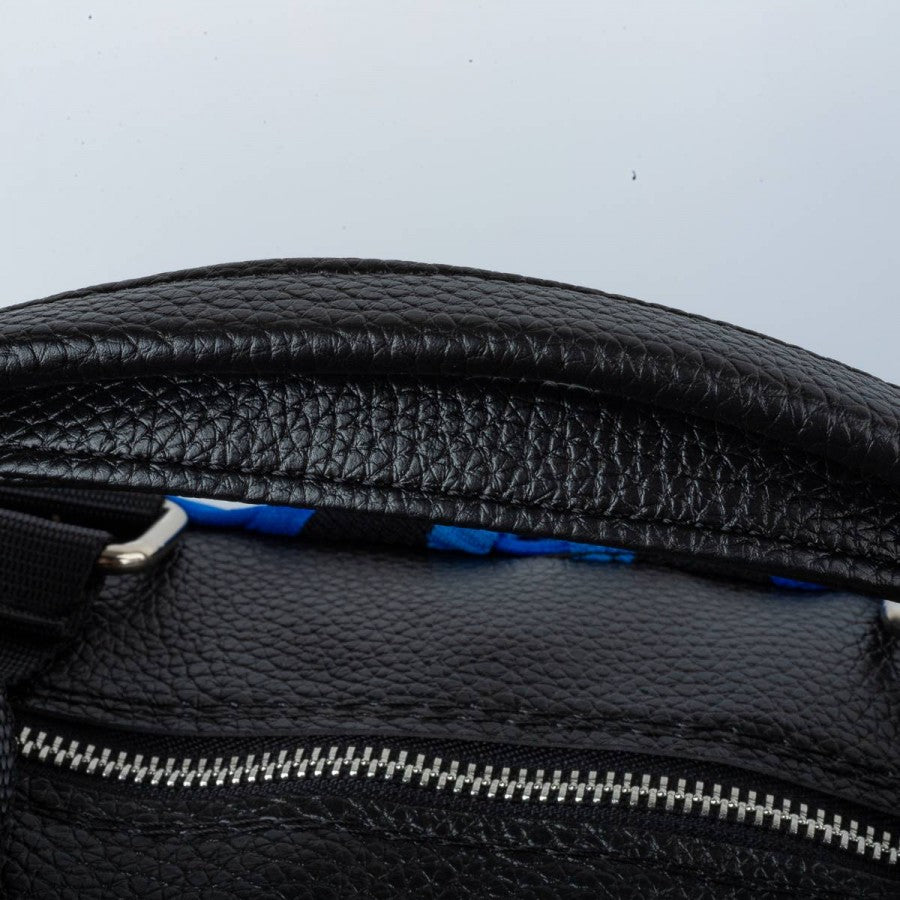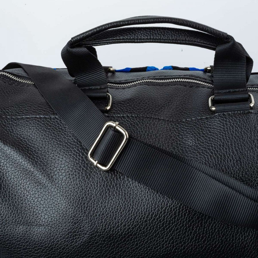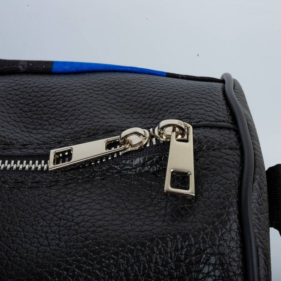 Borsone artigianale realizzato a mano con inserti provenienti da una maglia originale dell'Inter stagione 1997/1998, prodotta da Umbro. I dettagli della maglia, come il logo Umbro, lo sponsor Pirelli e lo stemma della squadra con stella superiore, sono cuciti e ben visibili sul fronte. Struttura in simil pelle nera con tracolla regolabile e doppi manici. Un pezzo unico che fonde stile e passione nerazzurra, perfetto per collezionisti o per l'uso quotidiano.