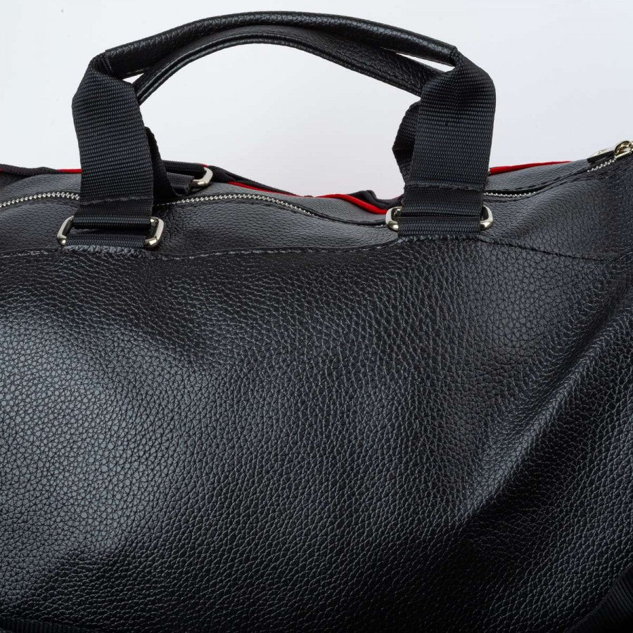 Borsone realizzato a partire dalla maglia home del Milan stagione 2001/2002, firmata Adidas. Design rosso con inserti neri e dettagli originali, tra cui lo stemma del club con stella, il logo Adidas e lo sponsor Opel. La parte frontale richiama il colletto a V della divisa ufficiale. Fianchi e fondo in similpelle nera martellata per una maggiore resistenza. Manici rinforzati e tracolla regolabile. Pezzo unico, artigianale, pensato per veri appassionati rossoneri.