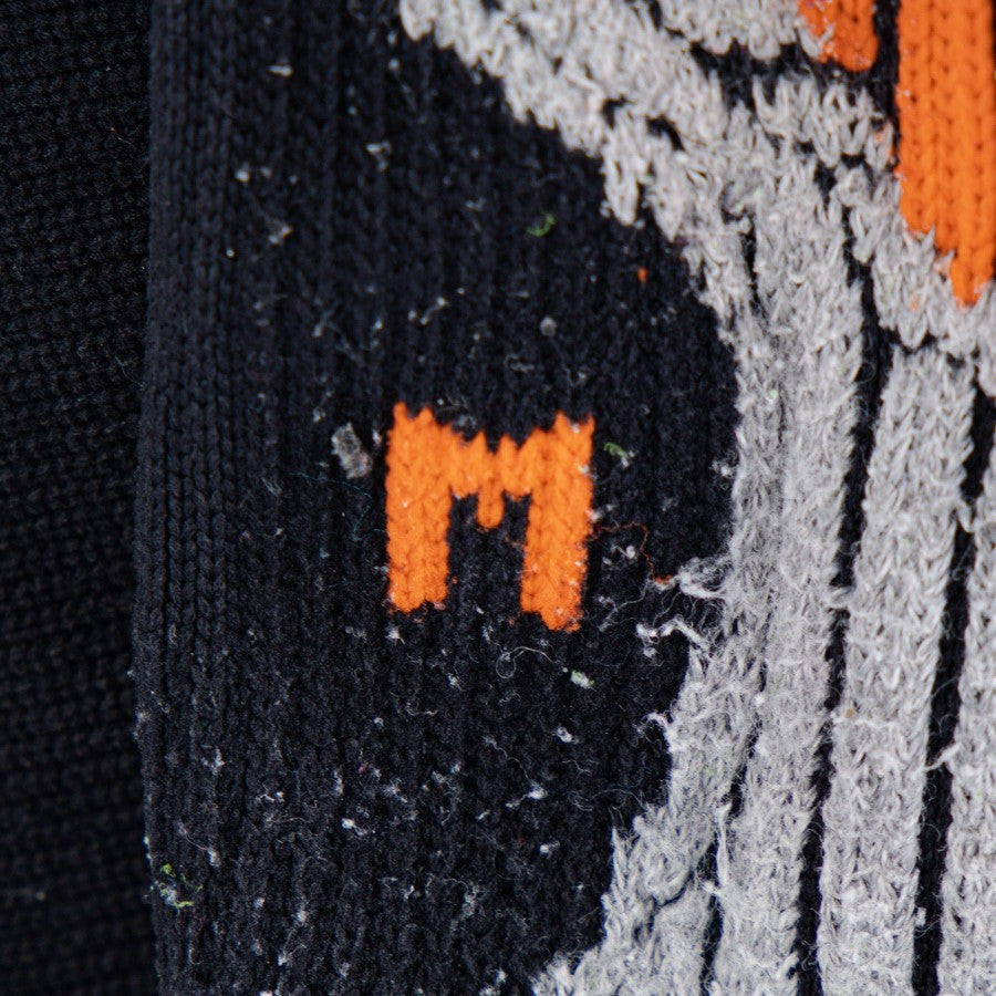 I calzettoni sono prevalentemente di colore nero. Tuttavia, nella parte inferiore si può notare una sfumatura di grigio, creando un interessante contrasto. Per aggiungere un tocco di vivacità, sono presenti dei cerchi blu e arancioni. Poco sopra le caviglie troviamo, in un bianco acceso, il lettering "INTER" da un lato e il logo Nike dall'altro.