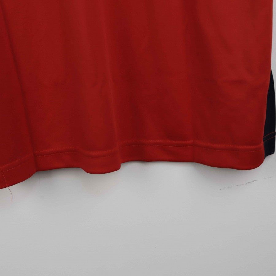 Modello di colore rosso con dettagli blu e bianchi, con lo stemma del club posizionato sul lato cuore.