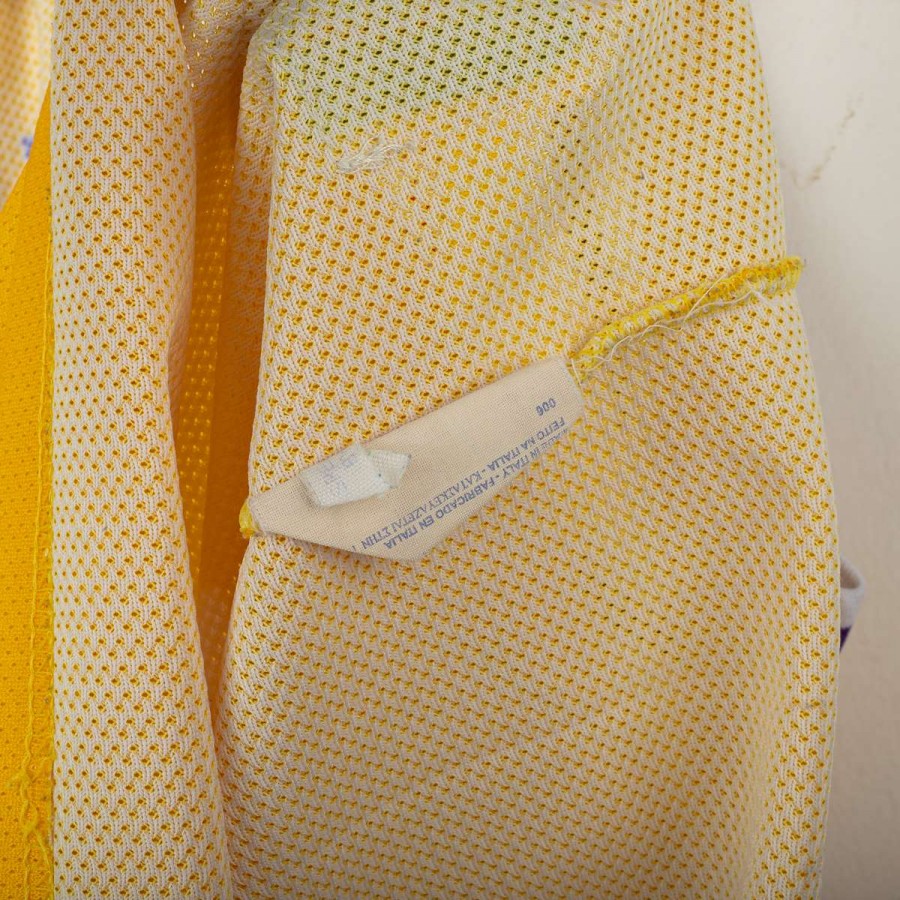 Canotta da basket dei Los Angeles Lakers prodotta da Champion, dedicata al leggendario Shaquille O'Neal, numero 34. Colore giallo oro con bordi viola e bianchi, logo Lakers frontale in tessuto applicato. Nome “O'NEAL” e numero 34 cuciti sul retro. Logo NBA e Champion cuciti sul petto. Etichetta Champion originale cucita in basso. Taglia L (11/12 anni).