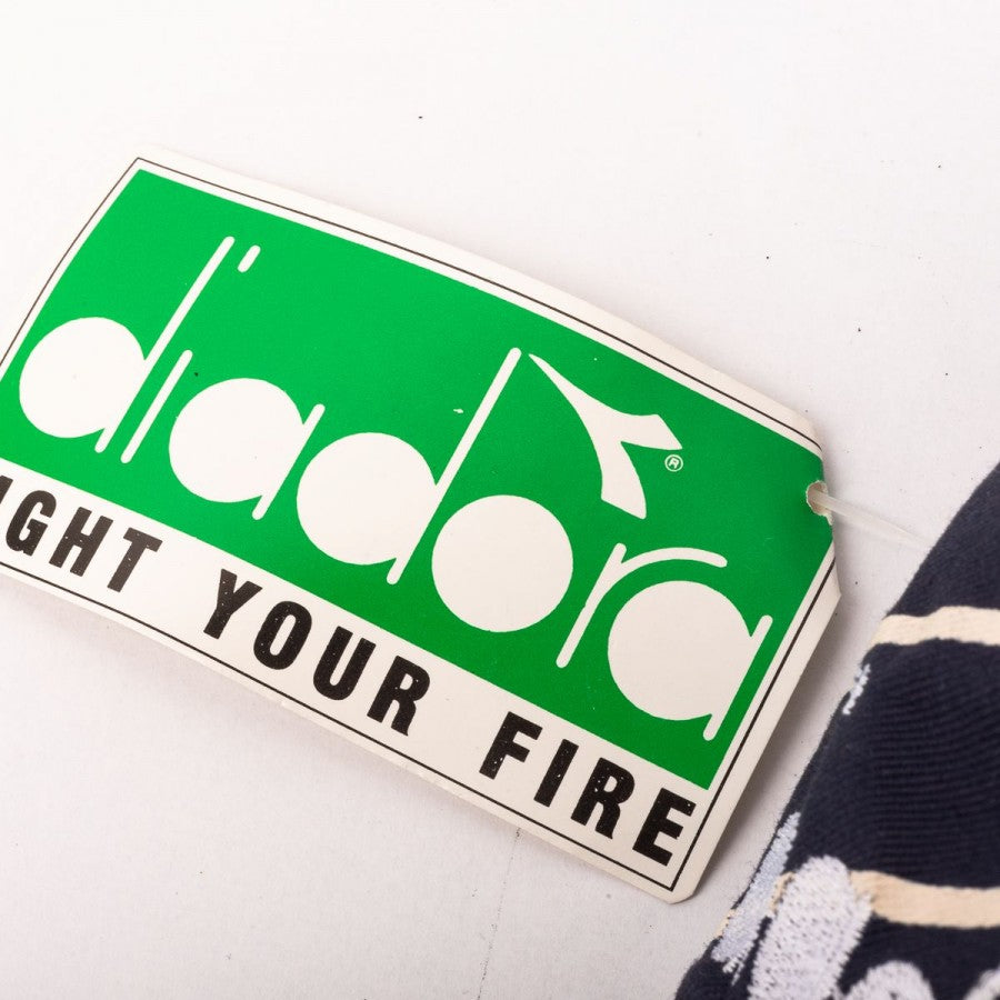 Cappello ufficiale della Nazionale Italiana realizzato da Diadora in occasione dei Mondiali USA 1994. Il modello è a righe verticali blu e bianche con visiera blu, chiusura regolabile sul retro e logo Diadora ricamato. Sul fronte è presente la scritta “ITALIA” in bianco bordato rosso e il logo FIGC stilizzato con tre stelle dorate. Ancora provvisto di cartellino originale “Light Your Fire”.