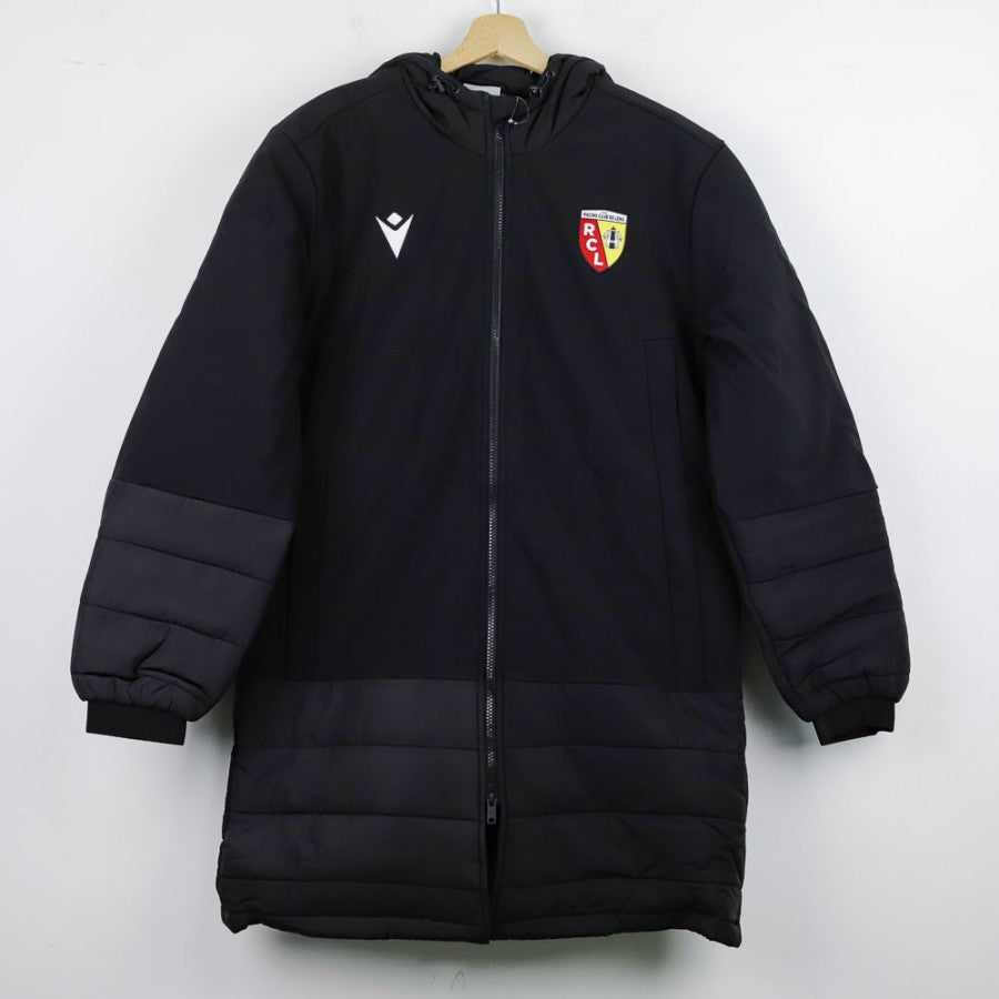 Cappotto ufficiale del RC Lens per la stagione 2020/2021, prodotto dallo sponsor tecnico Macron. Questo cappotto nero imbottito è pensato per le fredde giornate invernali e presenta il logo Macron e lo stemma del club RC Lens sul petto. La giacca è dotata di cappuccio e di una chiusura a zip frontale, assicurando comfort e protezione dal freddo. Ideale per i tifosi del club francese che desiderano supportare la squadra mantenendosi al caldo durante le partite.