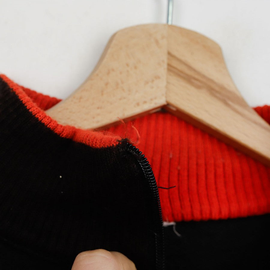 Felpa ufficiale dell'AC Milan prodotta da Irma per la stagione 1981/1982. Il design iconico presenta una base nera con dettagli rossi sulle maniche, sul colletto e sui bordi, mentre sul retro spicca il grande stemma del Milan con la scritta "Milan A.C." in velluto. Sul petto è presente un piccolo logo del diavolo, simbolo storico del club. La chiusura con zip completa lo stile vintage di questa felpa, ideale per i collezionisti e gli appassionati rossoneri.