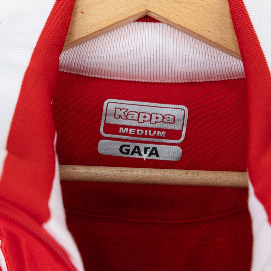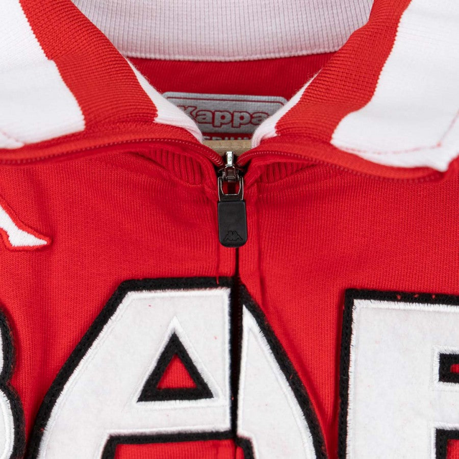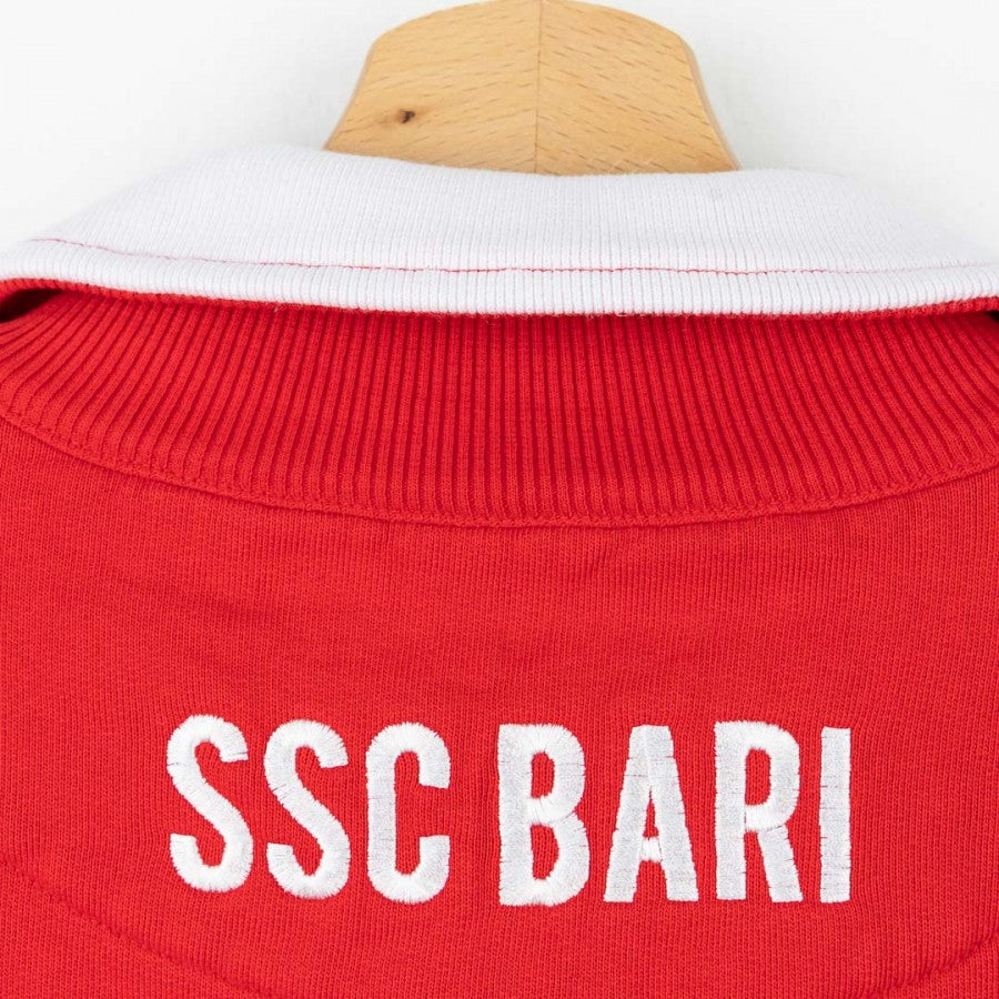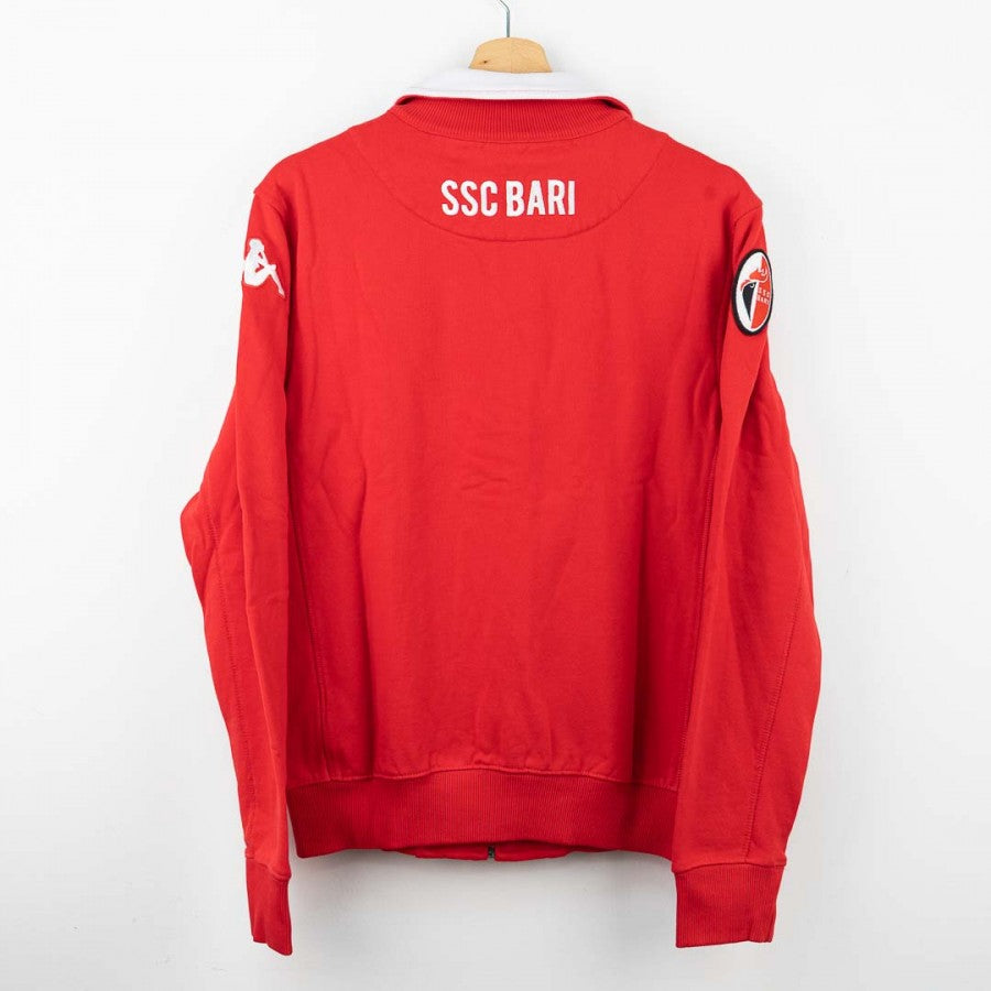 Felpa ufficiale della SSC Bari per la stagione 2020/2021, realizzata dallo sponsor tecnico Kappa. Questa felpa, dal colore rosso acceso, presenta un design sportivo con dettagli distintivi come il grande logo "BARI" in rilievo sul petto e il logo Kappa ricamato sulle spalle. Lo stemma del club con il tradizionale galletto è applicato sulla manica sinistra, mentre sul retro troviamo la scritta "SSC Bari". Dotata di una zip centrale e di un colletto bianco, questa felpa in taglia M unisce stile e praticità, perfetta per i tifosi che vogliono mostrare il loro supporto con orgoglio.