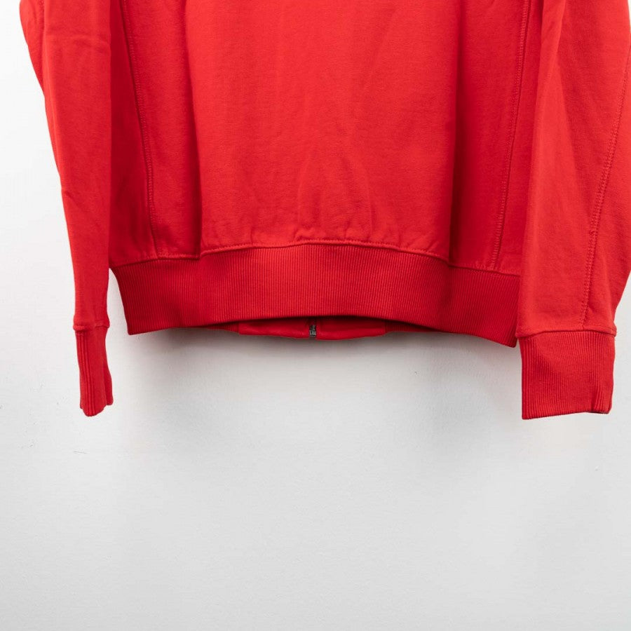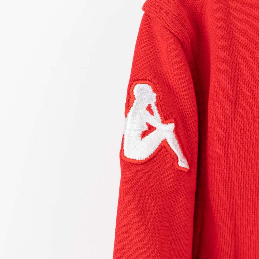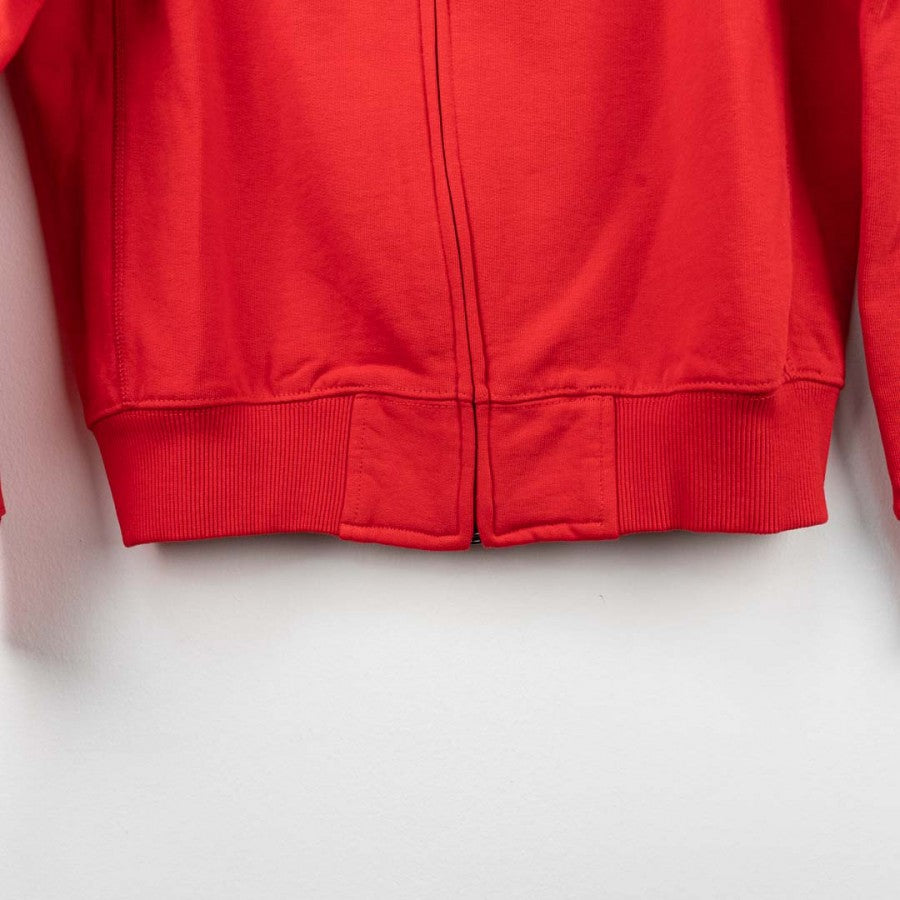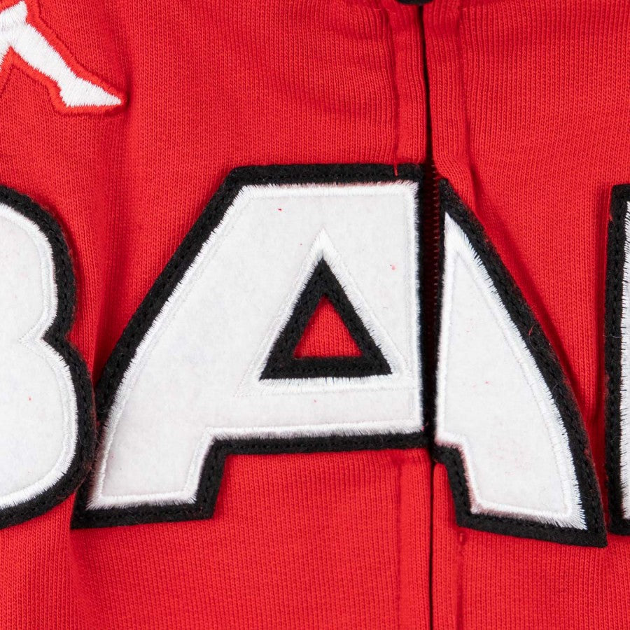 Felpa ufficiale della SSC Bari per la stagione 2020/2021, realizzata dallo sponsor tecnico Kappa. Questa felpa, dal colore rosso acceso, presenta un design sportivo con dettagli distintivi come il grande logo "BARI" in rilievo sul petto e il logo Kappa ricamato sulle spalle. Lo stemma del club con il tradizionale galletto è applicato sulla manica sinistra, mentre sul retro troviamo la scritta "SSC Bari". Dotata di una zip centrale e di un colletto bianco, questa felpa in taglia M unisce stile e praticità, perfetta per i tifosi che vogliono mostrare il loro supporto con orgoglio.