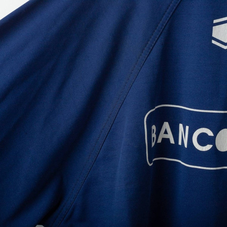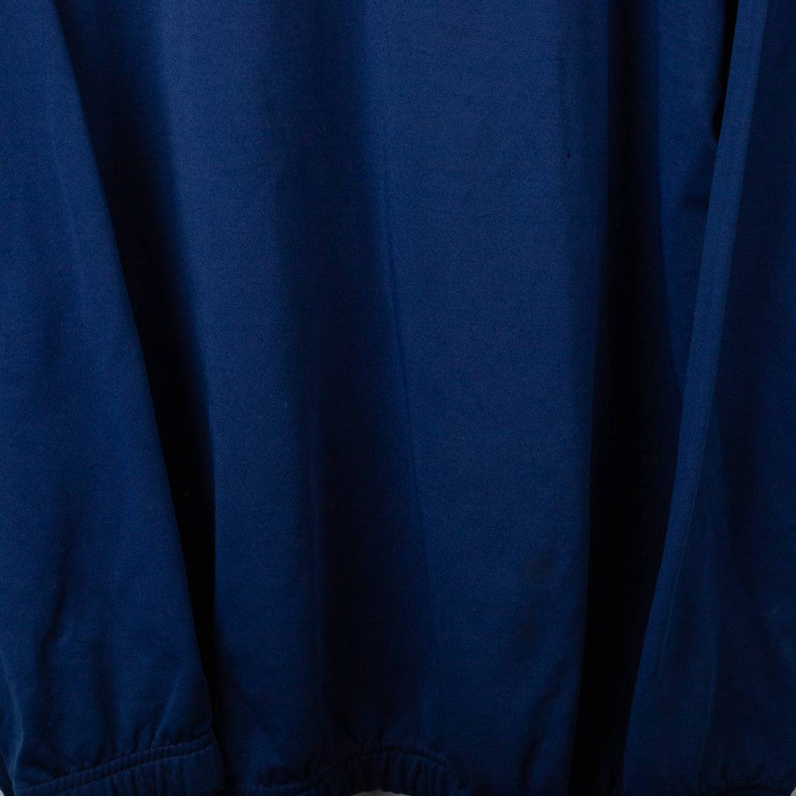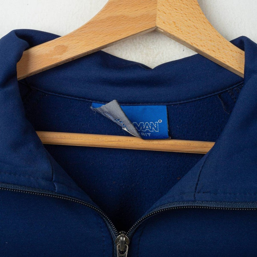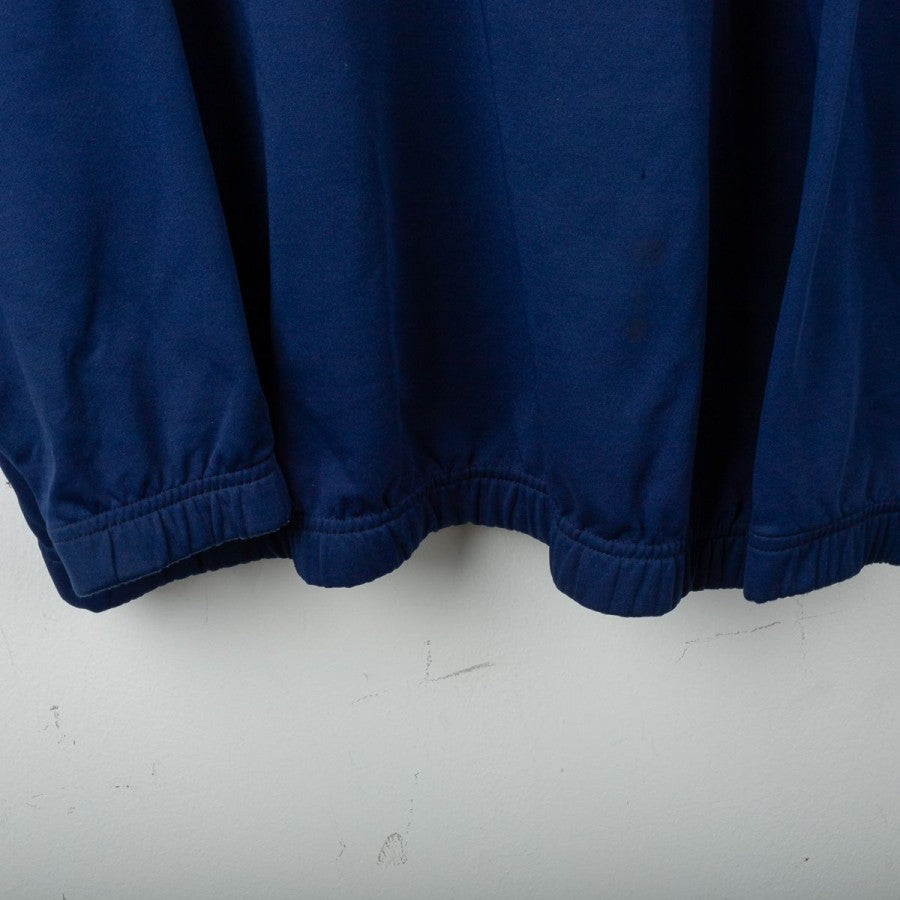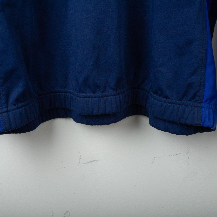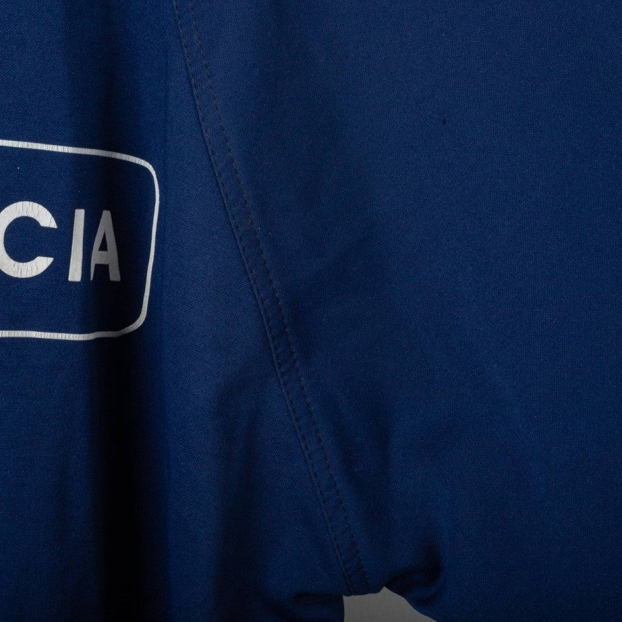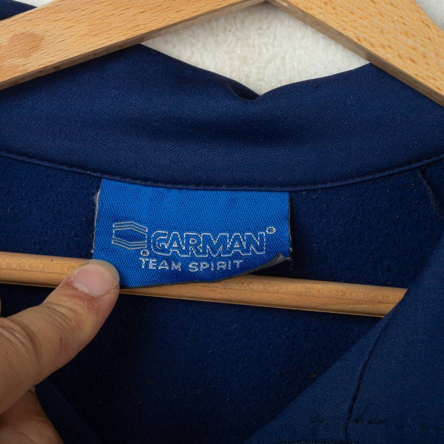 Felpa del Brescia Calcio utilizzata nella stagione 2001/2002, prodotta da Garman. Colore blu con inserti laterali in tonalità più chiara. Logo Garman bianco stampato sul lato destro del petto e sul retro. Logo del Brescia Calcio ricamato sul lato sinistro del petto. Sponsor “Banca Lombarda” stampato in bianco al centro sul fronte, e “Banco di Brescia” stampato sul retro. Mezza zip frontale con cursore personalizzato Garman, polsini e fondo con elastico. Taglia XXL.