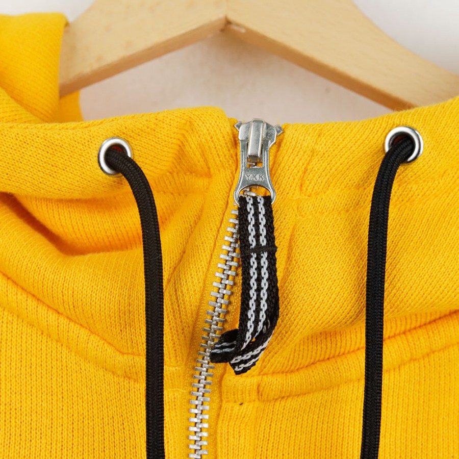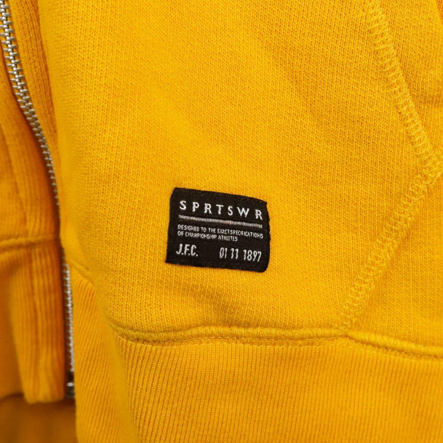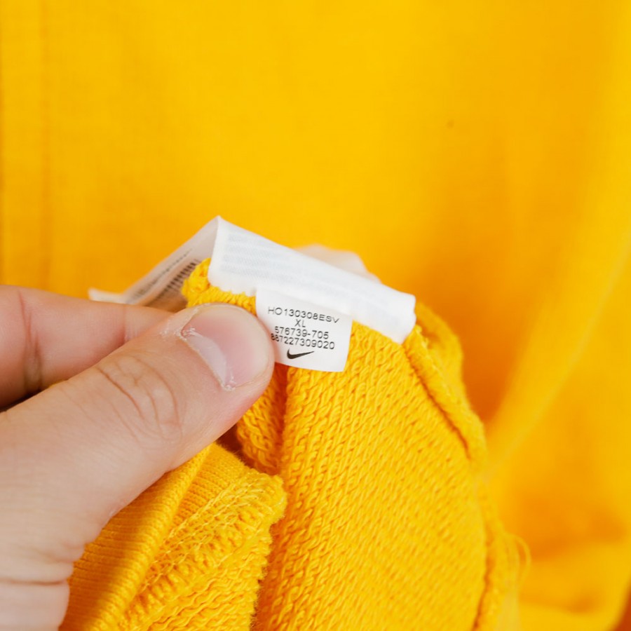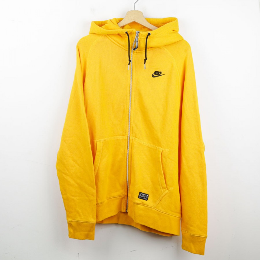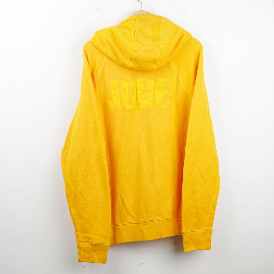 Felpa ufficiale della Juventus per la stagione 2013/2014, realizzata da Nike. Il design è caratterizzato da un vivace colore giallo con dettagli neri e chiusura a zip. Sul petto è presente il logo Nike, mentre sulla parte posteriore è ricamata la scritta "Juve". Dotata di cappuccio regolabile con lacci e tasche frontali. Taglia XL.