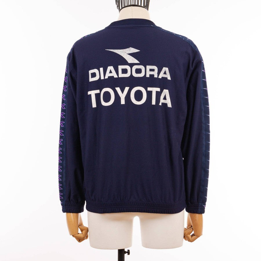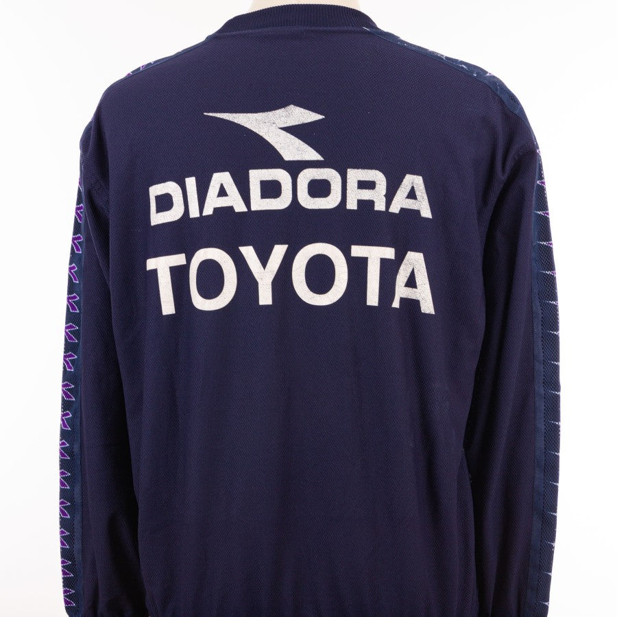 Felpa da allenamento della Fiorentina prodotta dalla Diadora per la stagione 2000/2001. Prodotto della linea di abbigliamento in dotazione alla squadra in buono stato di conservazione.