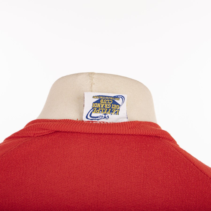 Felpa Milan prodotta da Felpe Grandi Club. La felpa si presenta in buone condizioni, esente da macchie o aloni. iI tessuto è intatto, presenta le caratteristiche originali.Non ci sono discontinuità di colore. Non presente etichetta con taglia, la felpa ha la vestibilità di una M/L