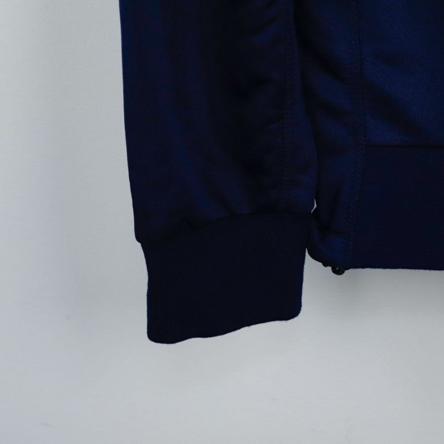 Modello full zip e collo alto di colore blu con dettagli azzurri, con lo stemma del club posizionato sul lato cuore.