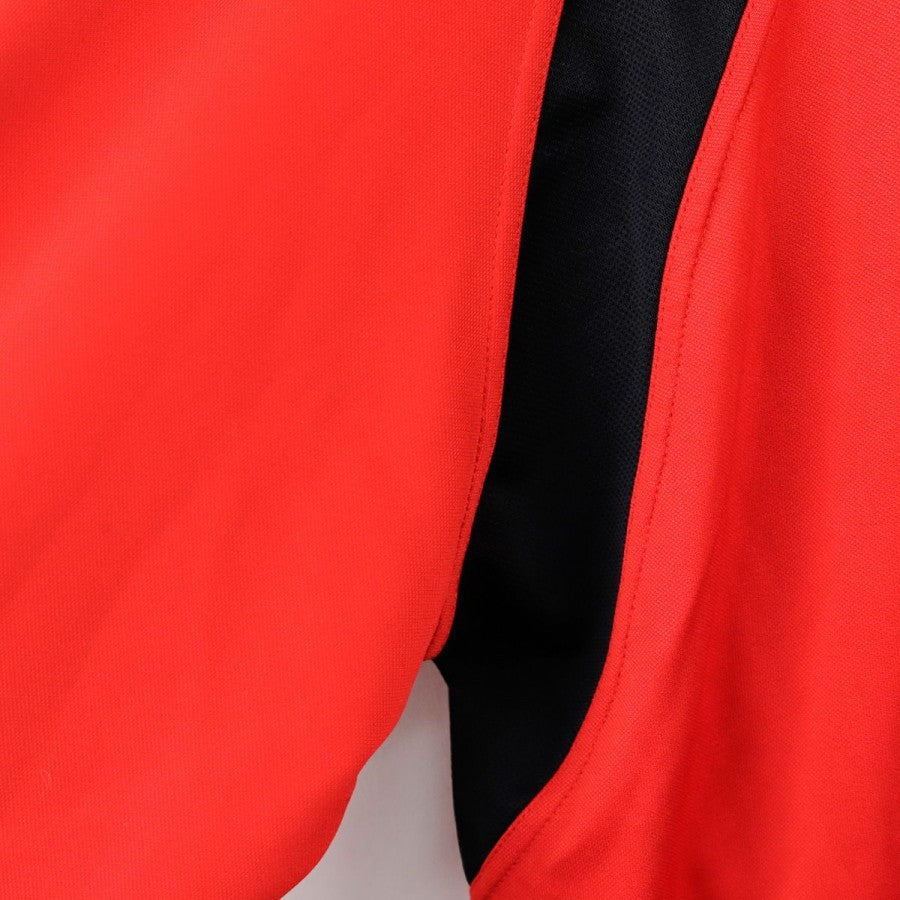 Felpa Milan Adidas Opel 2005/2006, taglia 168 (corrispondente a una M junior), realizzata dallo sponsor tecnico Adidas. Il capo si presenta in un vivace rosso con inserti neri e le iconiche tre strisce bianche sulle maniche. Sul petto sono visibili lo stemma del Milan con la stella e i loghi Adidas e Opel, presenti anche sul retro in formato oversize. Questa felpa richiama la stagione 2005/2006, in cui il Milan di Ancelotti sfiorò lo Scudetto e raggiunse le semifinali di Champions League, trascinato da campioni come Kakà, Shevchenko e Pirlo. Un pezzo di abbigliamento sportivo che unisce stile e storia del club rossonero.