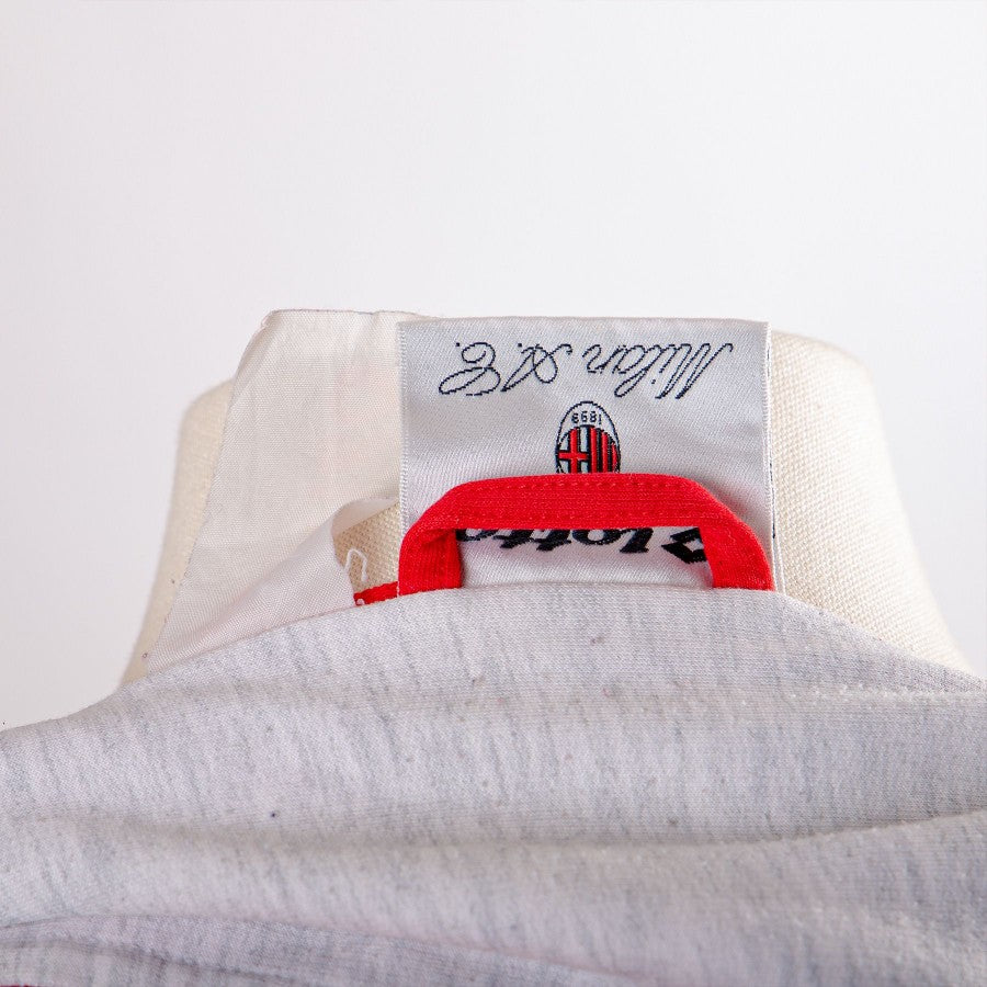 Felpa del Milan della Lotto, stagione calcistica 1995/1996, modello full zip. Presenti le tasche laterali con zip ed elastico in vita ed ai polsini. Sul fronte troviamo cucita la patch del Milan lato cuore e ricamato il logo dello sponsor tecnico Lotto, sulla destra.