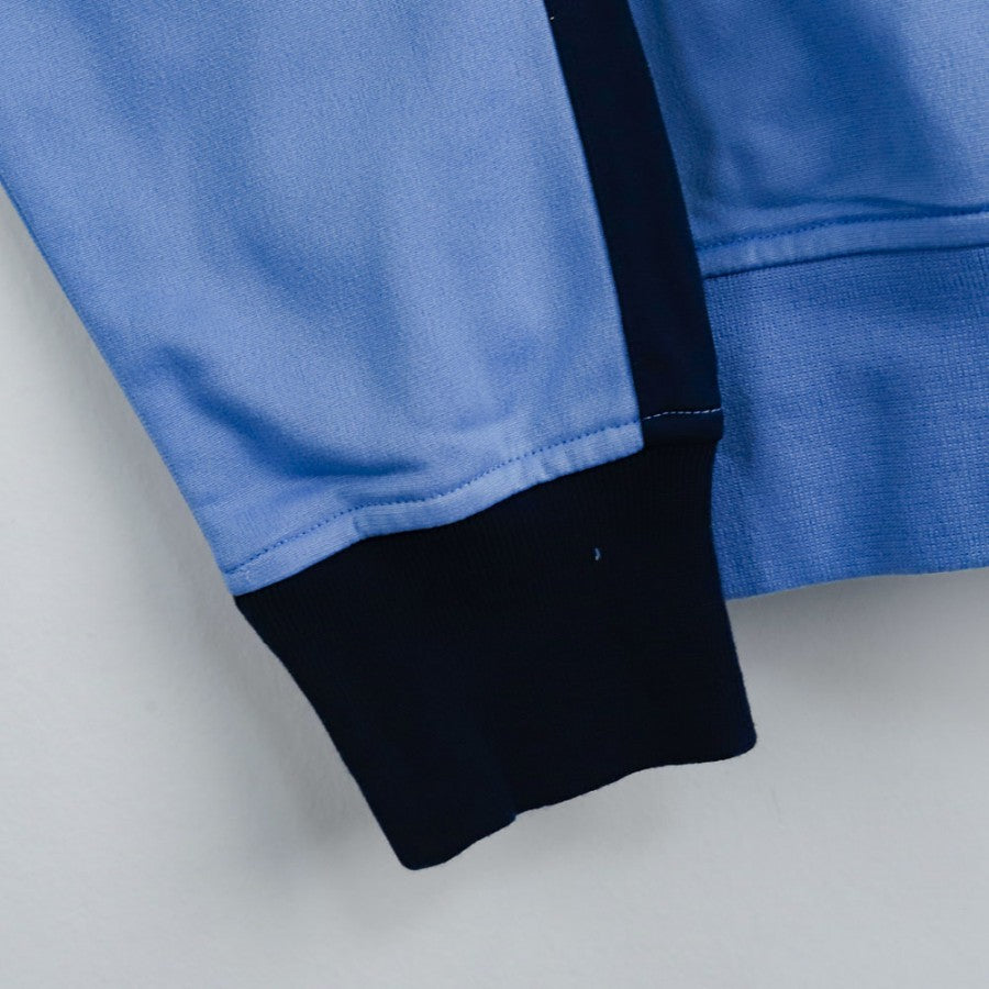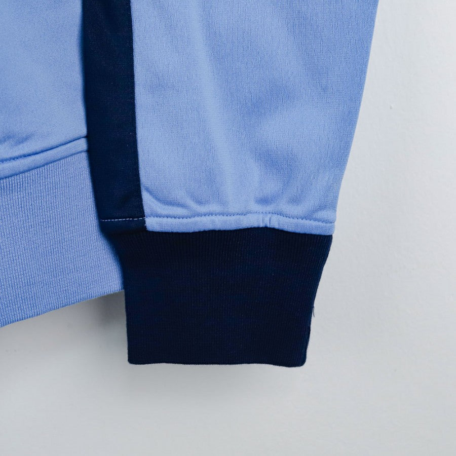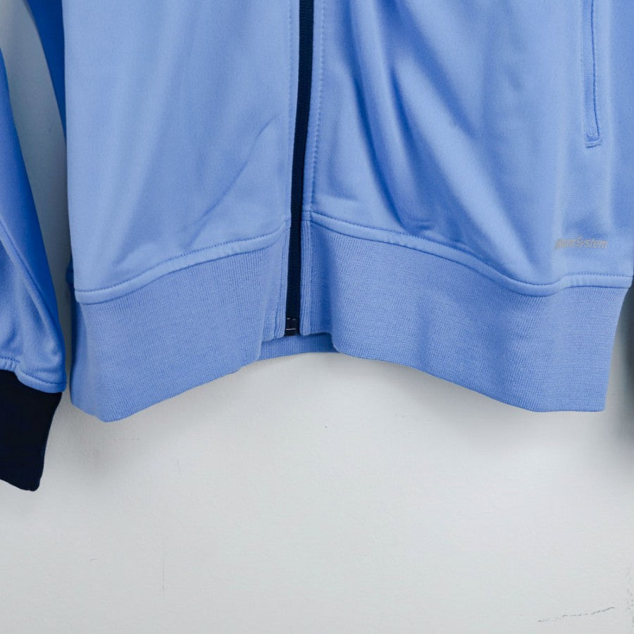 Modello full zip di colore celeste con dettagli blu, con lo stemma del club posizionato lato cuore.