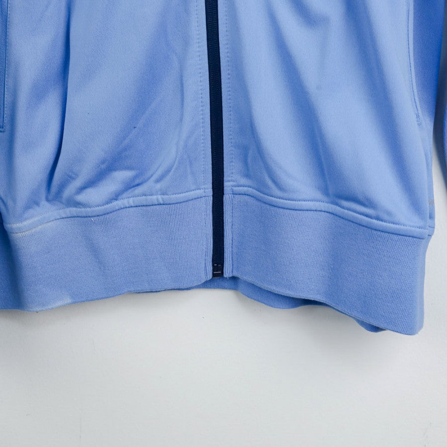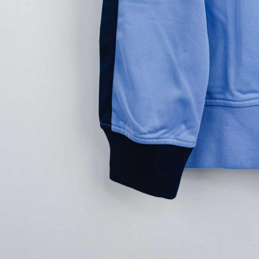 Modello full zip di colore celeste con dettagli blu, con lo stemma del club posizionato lato cuore.