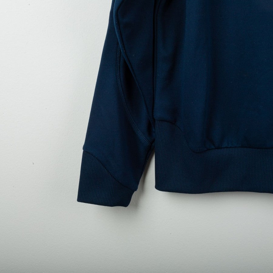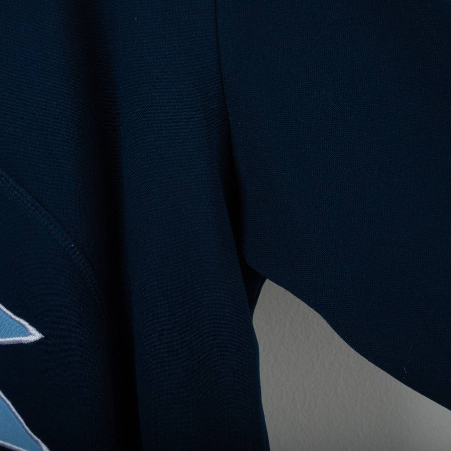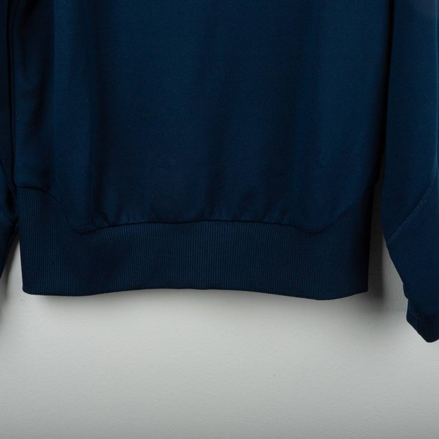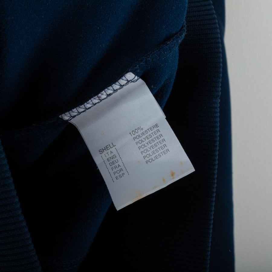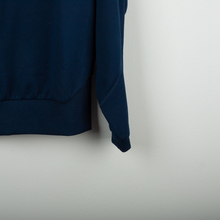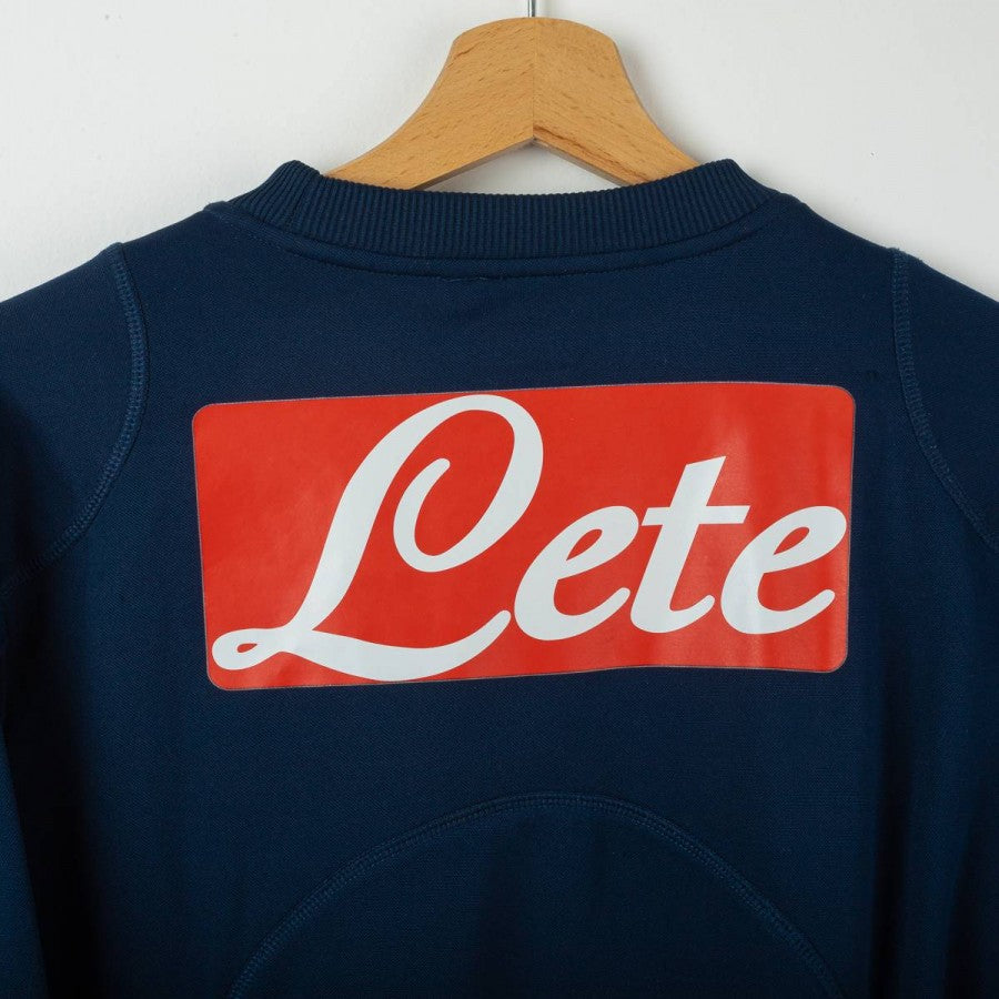 Felpa da allenamento del Napoli stagione 2009/2010, prodotta da Diadora. Colore blu navy con sponsor Lete stampato sul fronte e sul retro. Logo Diadora ricamato sul petto e grande logo Diadora azzurro applicato sul retro. Stemma SSC Napoli applicato lato cuore. Vestibilità comoda, ideale per collezionisti.