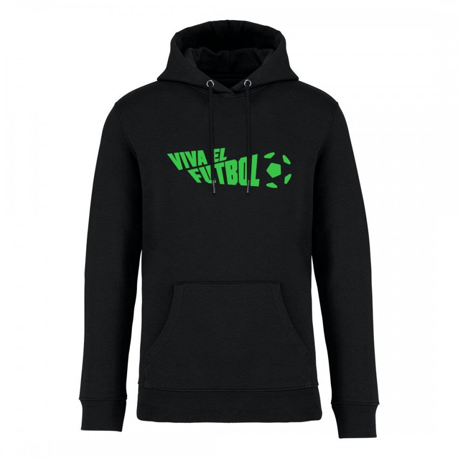 Felpa nera a con cappuccio | Stampa "Viva el Futbol" in gomma di colore verde | Cotone organico
