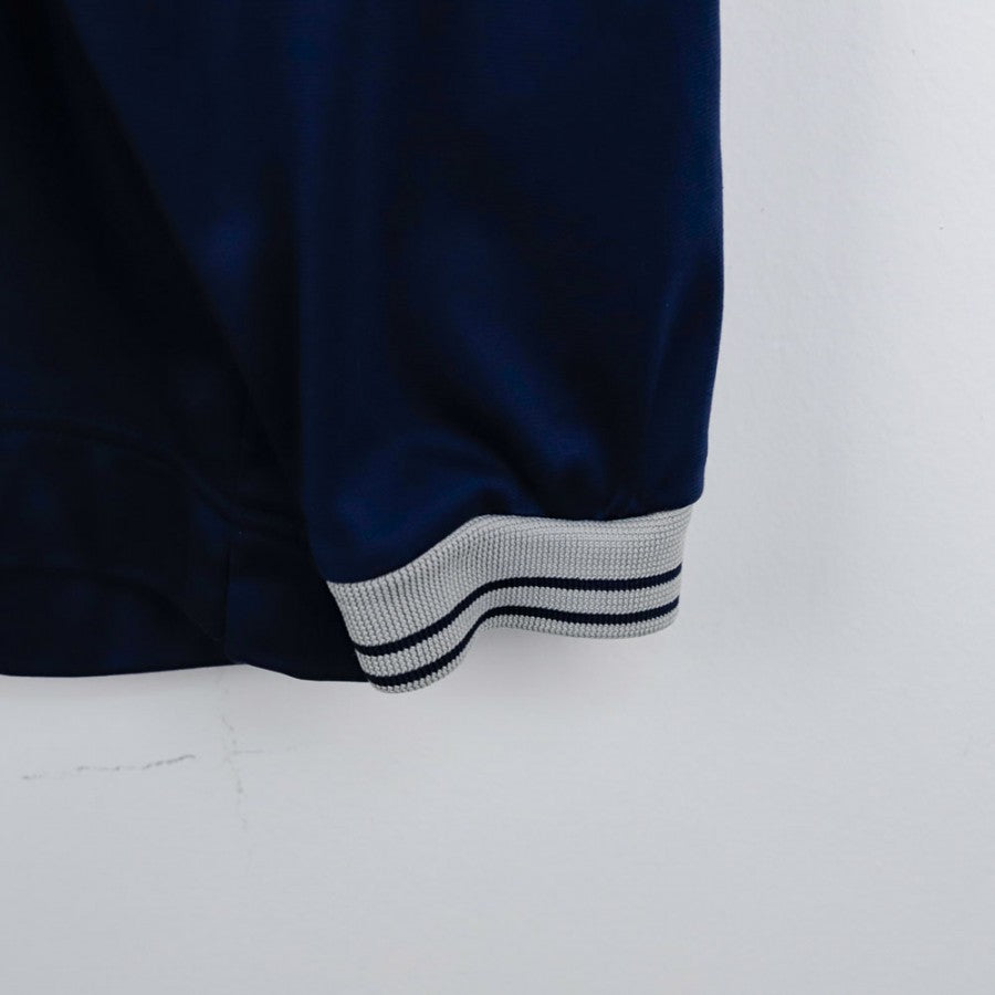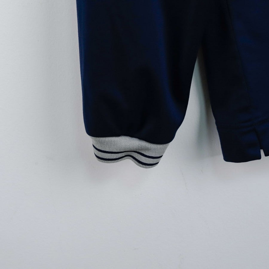 Felpa ufficiale del Piacenza, stagione 2005/2006, prodotta dallo sponsor tecnico Macron. Di colore blu navy, questa felpa si distingue per il grande logo "PIACENZA" stampato in bianco sul petto e per lo stemma del club ricamato sul lato sinistro, raffigurante la caratteristica testa del lupo all'interno di un rombo rosso. Il logo Macron è ricamato in bianco sul lato destro del petto. Il design è completato da dettagli grigi a contrasto, colletto a righe e polsini elasticizzati. La taglia indicata è XL, un capo ideale per collezionisti e tifosi del Piacenza.