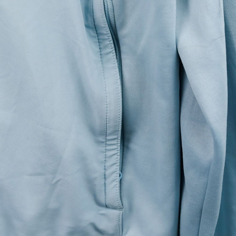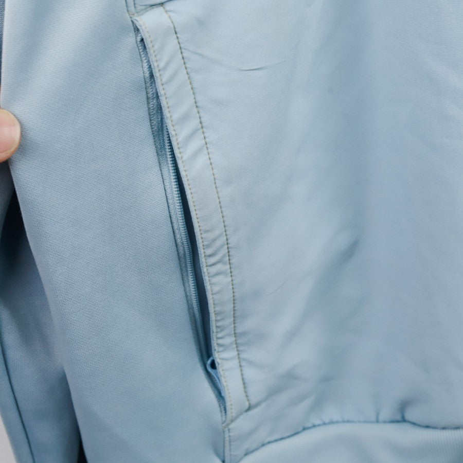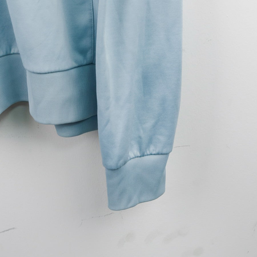 Felpa Puma Maradona King 10 in edizione celebrativa, realizzata in tessuto tecnico celeste con inserti bianchi e dettagli a contrasto blu e oro. Il logo tecnico Puma è presente su petto e maniche, mentre sul lato sinistro della giacca è ben visibile lo scudetto commemorativo con il numero 10 e la firma stilizzata di Diego Maradona. Sul retro, all'altezza del colletto, compare un ulteriore autografo serigrafato.
