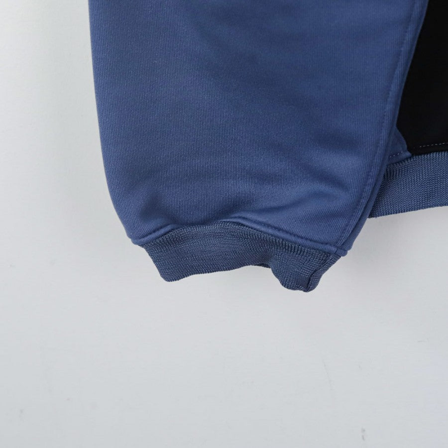 Felpa da allenamento ufficiale dell'Inter per la stagione 2000/2001, prodotta dallo sponsor tecnico Nike. Di colore blu, questa felpa presenta uno stile essenziale con una zip corta sul davanti e il logo Nike ricamato a destra, posizionato all'interno di un elegante scudo. Sul lato sinistro del petto si trova lo stemma dell'Inter, accompagnato dallo sponsor commerciale Pirelli in bianco. Il retro è arricchito dalla scritta "Inter" e dal grande logo Pirelli in evidenza. La felpa, in taglia S, è un classico esempio di abbigliamento tecnico dell'epoca, ideale per collezionisti e tifosi nerazzurri.