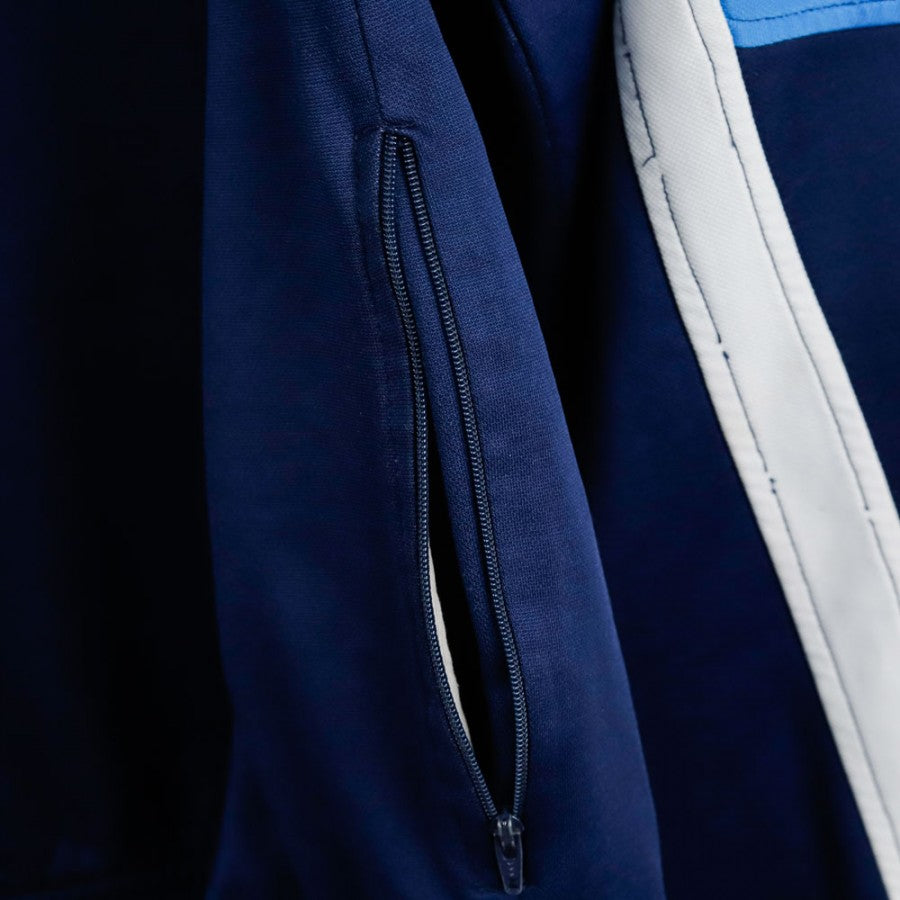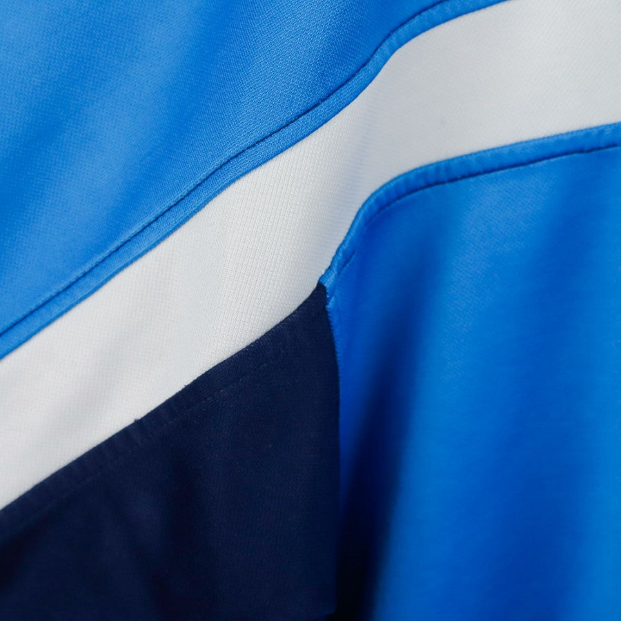 Felpa da allenamento del Napoli stagione 1996/1997, prodotta da Lotto. Il design è caratterizzato dai colori azzurro e blu navy con dettagli bianchi. Sul petto troviamo il logo Lotto e lo stemma del Napoli, insieme allo sponsor Centrale Latte di Napoli, presente anche sul retro. Il modello presenta una chiusura a mezza zip e polsini elasticizzati. Taglia L.