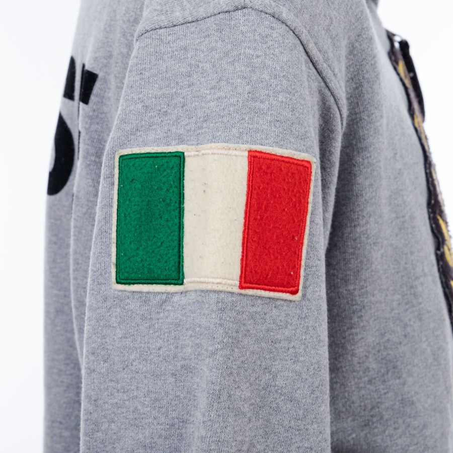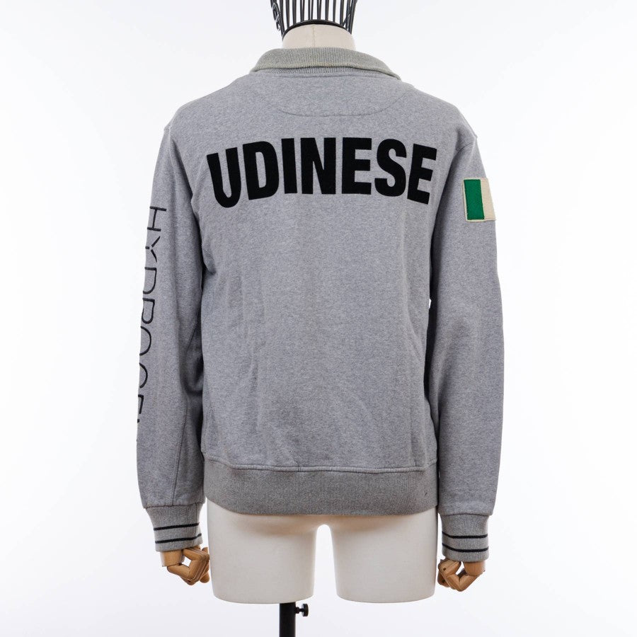 La maglia della squadra è grigia con una una chiusura full zip. Sulla spalla sinistra troviamo il logo dello sponsor Hydrogen in nero, mentre su quella destra lo stemma dell'Italia cucito. Sul petto, in ampio formato, è visibile il logo dell'Udinese calcio.