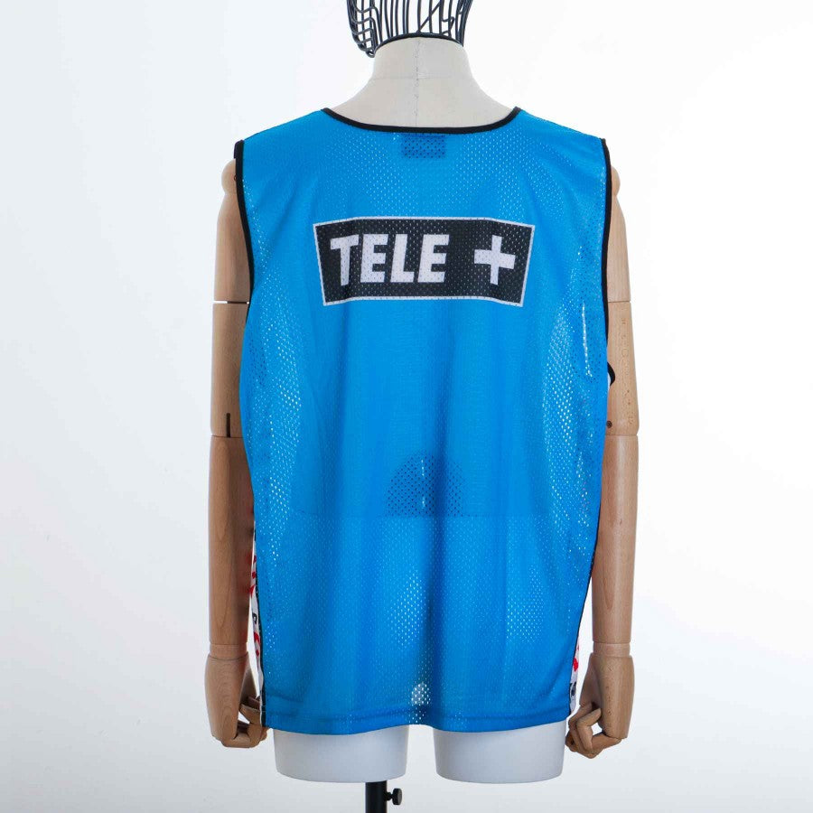 Casacca d'allenamento della Juventus di colore azzurro stagione 2000/2001. Sul fronte è sublimatico il logo Lotto mentre sul retro è nella trama il logo Tele+.