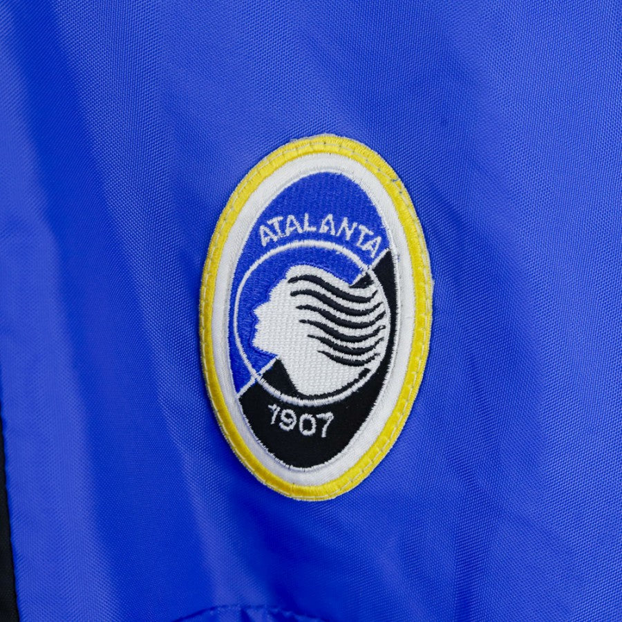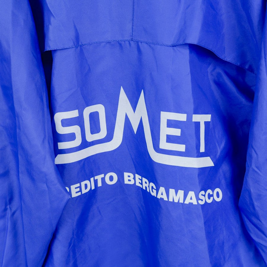 Giacca ufficiale dell'Atalanta per la stagione 1995/1996, prodotta dallo sponsor tecnico Asics e caratterizzata dallo sponsor commerciale Somet Credito Bergamasco. Di colore blu con dettagli neri sul colletto e sulla parte superiore, presenta il logo Asics ricamato sul petto e sulle maniche, mentre lo stemma dell'Atalanta è applicato lato cuore. Sul retro è visibile un grande logo Asics accompagnato dalla scritta Somet Credito Bergamasco. Gli inserti lungo le maniche riportano il logo Asics ripetuto. In taglia XL, questa giacca è un classico degli anni '90 e un must per i tifosi della Dea.