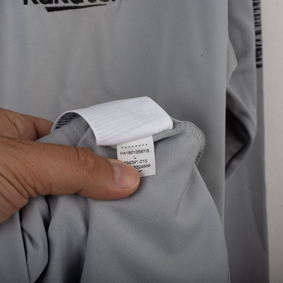Giacca del Barcellona della stagione 2016/2017, realizzata da Nike. Modello full zip in tessuto Dri-Fit grigio con dettagli viola sulle maniche. Logo Nike e numero 10 ricamati sul petto, insieme allo stemma FCB e sponsor Rakuten. Colletto bomber, tasche laterali con zip, taglia L.