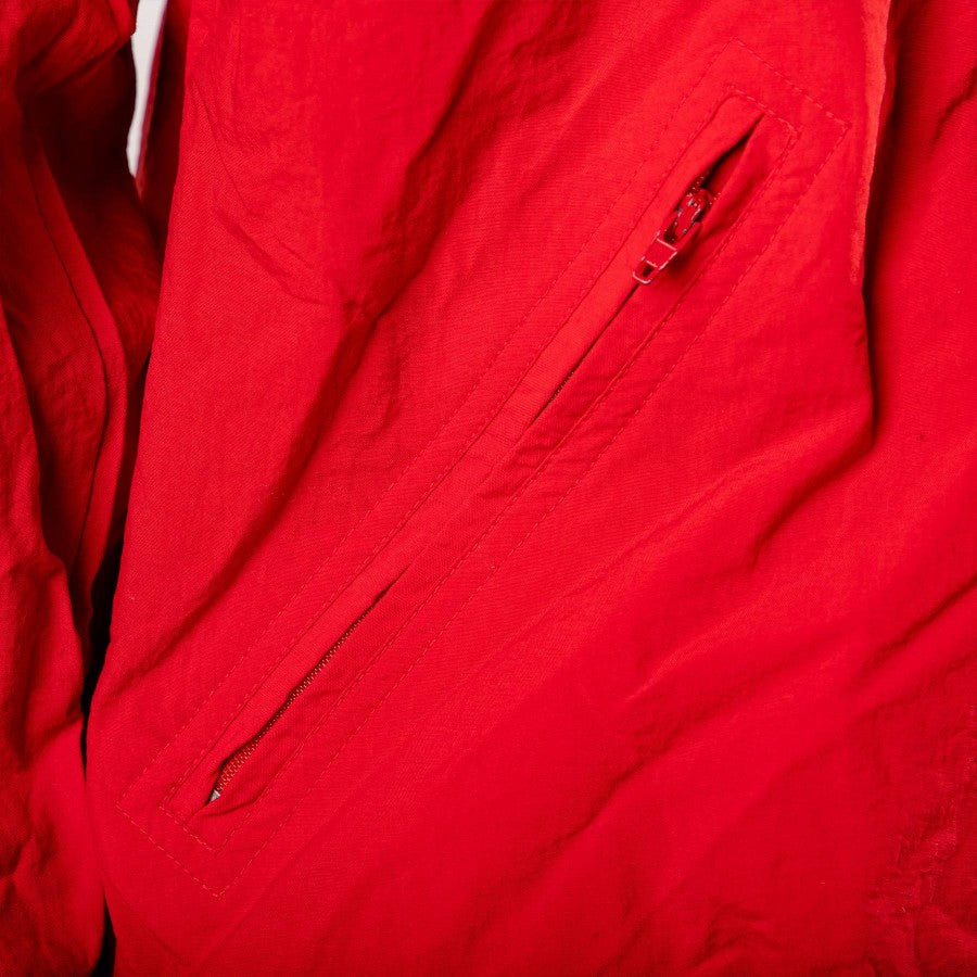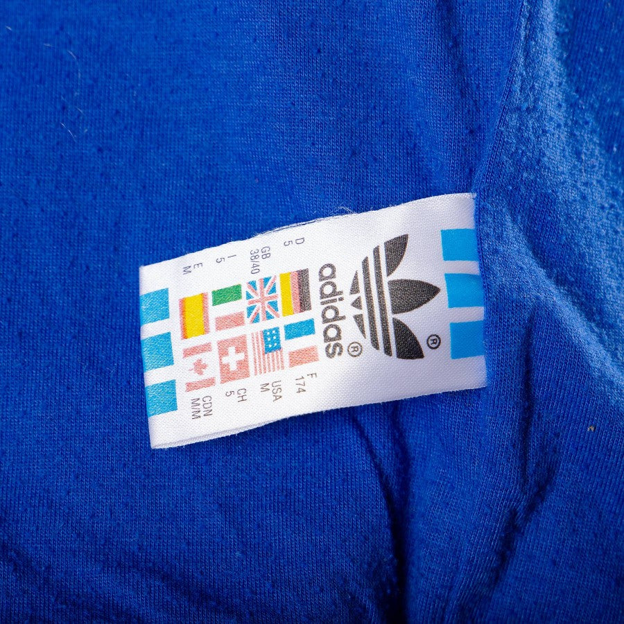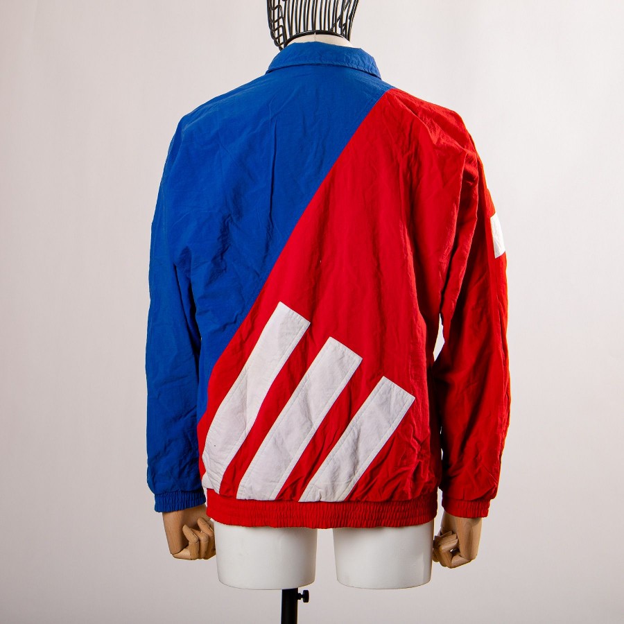 Giacca leggera Bayern Monaco della stagione 1991/1992. Modello full zip di colore rosso e blu con inserti bianchi. Sul fronte sono ricamati i loghi della squadra e quello dello sponsor tecnico Adidas. La giacca è completa di tasche laterali con zip ed elastico in vita ed ai polsi.