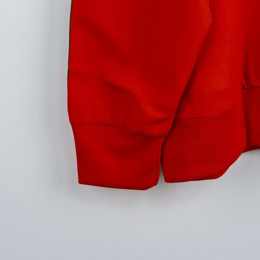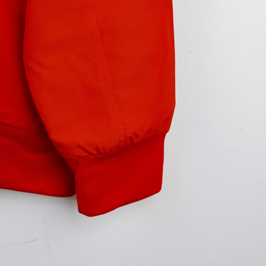 Modello full zip di colore rosso con dettagli grigi, con lo stemma del club posizionato lato cuore.
