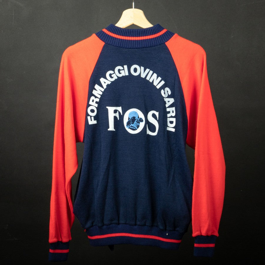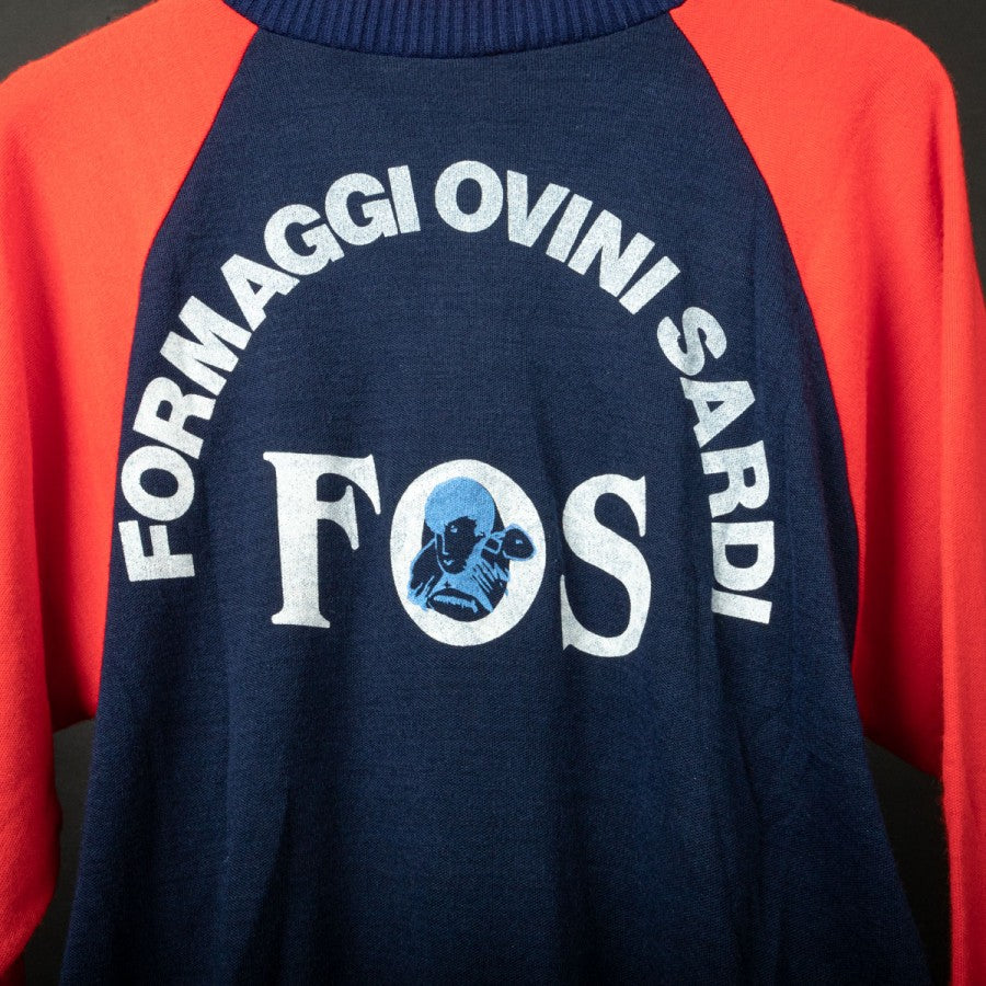 Sul retro è presente lo sponsor commerciale Formaggi Ovini Sardi in serigrafia bianca e azzurra. Polsisi e vita elastici.