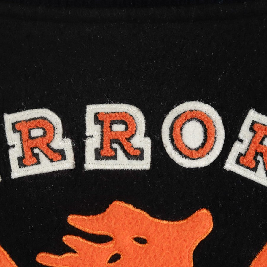 Giacca college ufficiale del Dundee United, stagione 1990/1991, prodotta dallo sponsor tecnico Bukta. Di colore nero con dettagli arancioni, presenta il logo Bukta ricamato e lo stemma del club cucito sia sul petto che sulle maniche. Sul retro spicca la scritta “Terrors” con il leone simbolo del club e il nome Dundee United FC. La giacca è realizzata in tessuto spesso con interno trapuntato, ideale per le giornate fredde. Taglia: XL.