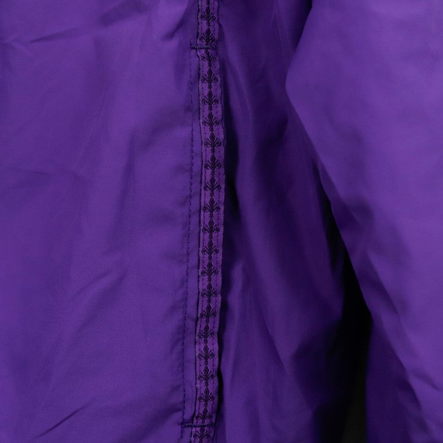 Giacca ufficiale della Fiorentina per la stagione 2013/2014 prodotta dallo sponsor tecnico Joma. Realizzata in tessuto tecnico di colore viola, presenta il logo Joma sul petto destro e lo stemma ACF Fiorentina sul lato cuore. Lo sponsor commerciale Mazda è ben visibile sotto il logo tecnico. Sul retro campeggia la scritta “ACF FIORENTINA” sopra un giglio tono su tono, emblema della città di Firenze. Sulla spalla sono presenti dettagli tricolore. La taglia è indicata come M.