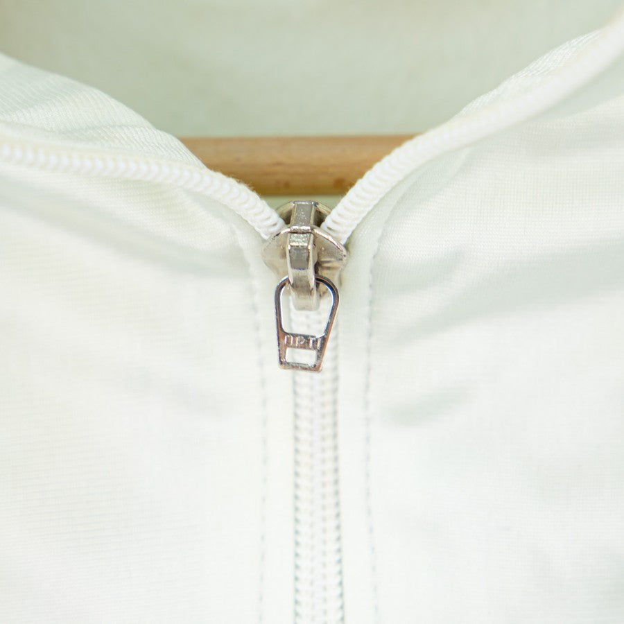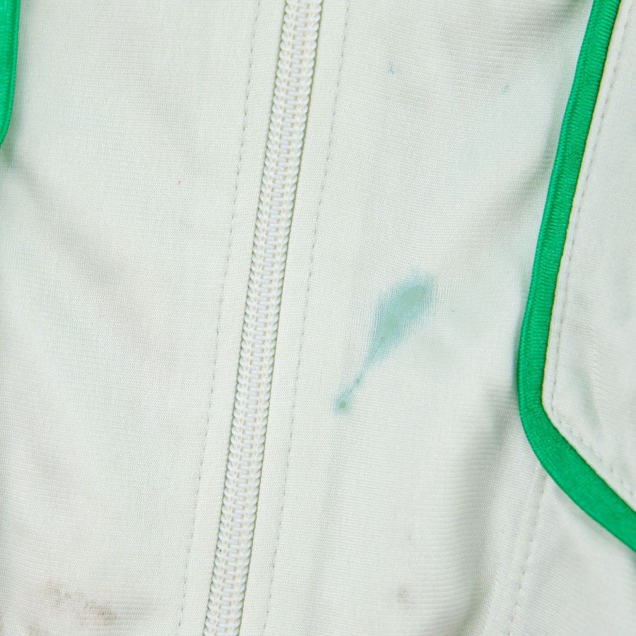 Modello full zip colore bianco con inserti blu, rossi e verdi. Tasche laterali. Lato cuore troviamo lo stemma della FIPM Italia, lateralmente il logo Diadora ricamato in blu.