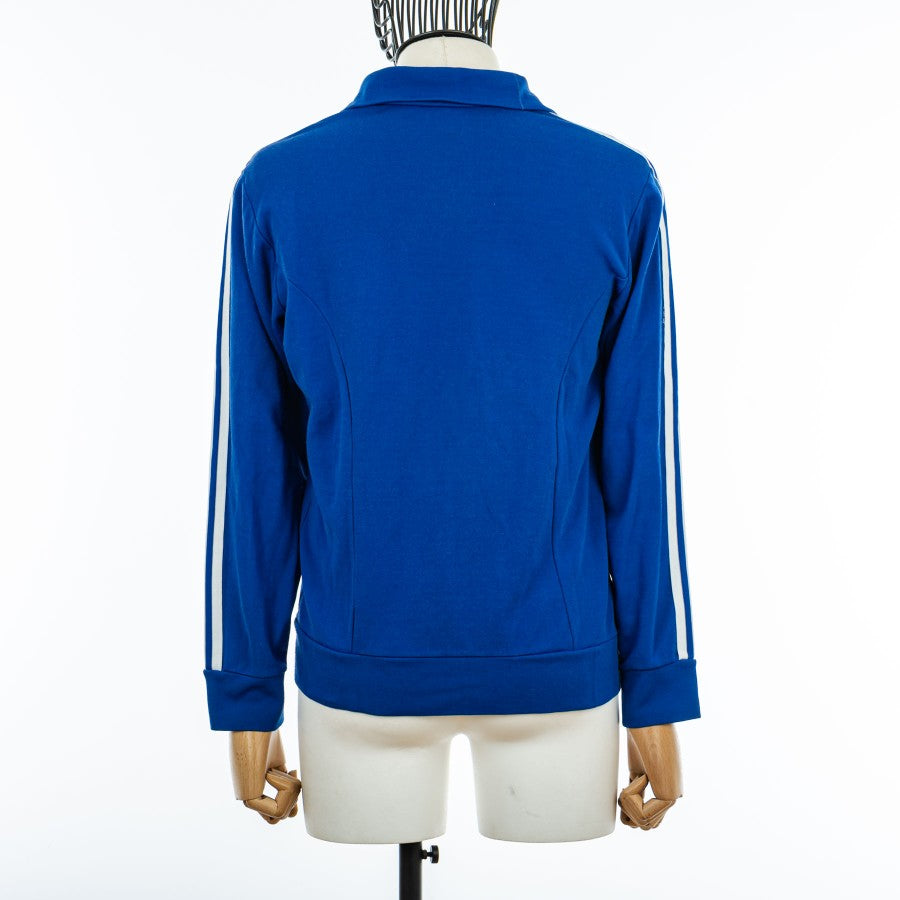 La giacca presenta un predominante colore blu con dettagli bianchi e una chiusura full zip.