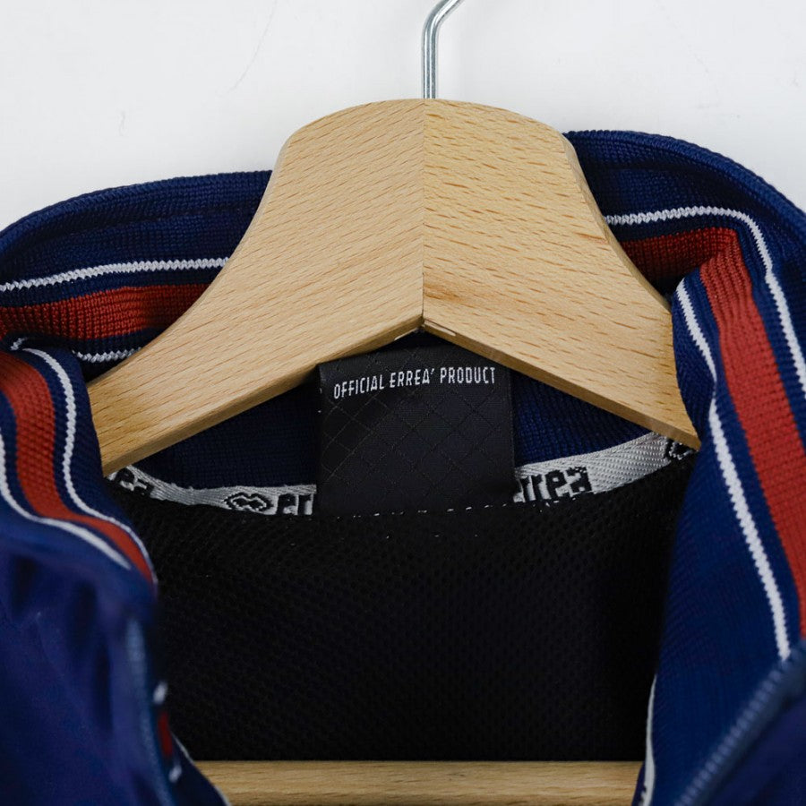 Modello con chiusura a zip di colore blu con dettagli rossi, presenta lo stemma del club sul lato cuore, il logo dello sponsor tecnico Errea e lo sponsor commerciale Costa.