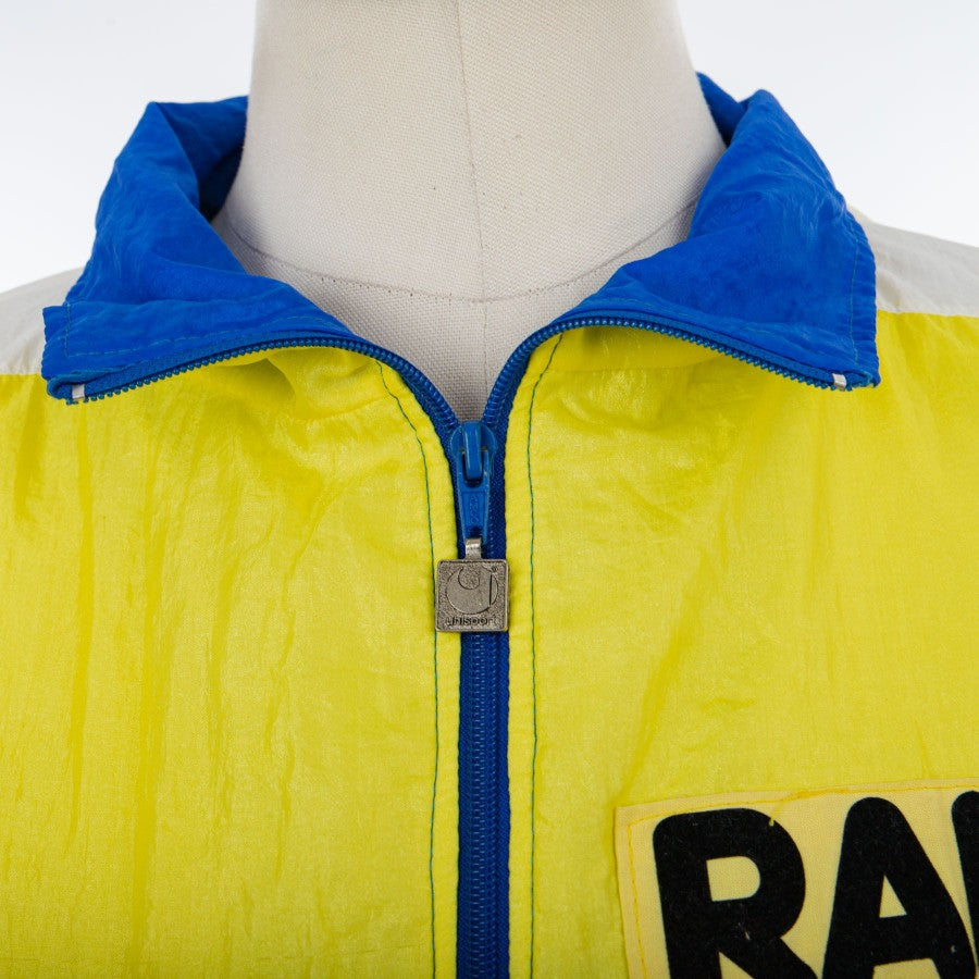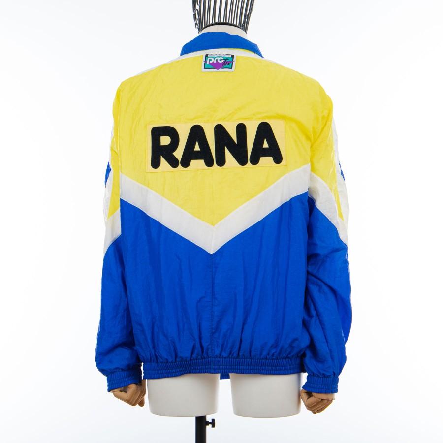 Il prodotto è ben visibile dalle diverse foto. La giacca è a maniche lunghe, con una lunga cerniera al centro e delle tasce con cerniera nella parte bassa, in colori giallo, per la sezione superiore dell'articolo, e blu per quella inferiore, intervallate da una striscia orizzontale bianca leggermente a V, sul busto e sulle maniche; in alto a sinistra sono applicati lo sponsor commerciale RANA, in nero, e, sotto questo, il logo del club, mentre dalla parte opposta troviamo lo sponsor tecnico "uhlsport".