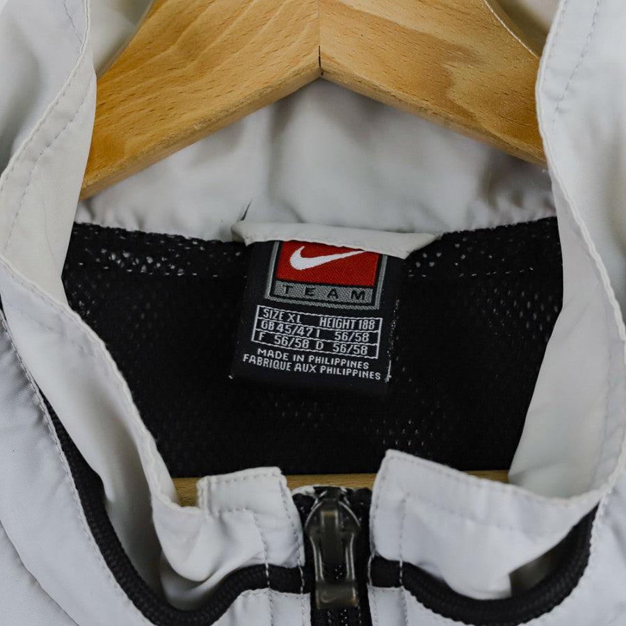 Giacca ufficiale dell'Inter per la stagione 1998/1999, realizzata dallo sponsor tecnico Nike. Questo capo è caratterizzato da un elegante colore grigio chiaro con dettagli neri e gialli, compreso il caratteristico swoosh Nike ricamato sul petto e sulla schiena. Lo stemma dell'Inter è posizionato sul petto lato cuore, mentre sul retro è presente una stampa tono su tono con la scritta "Inter 1908". Il design è completato da una cerniera frontale e un interno in mesh nero che garantisce traspirabilità e comfort.