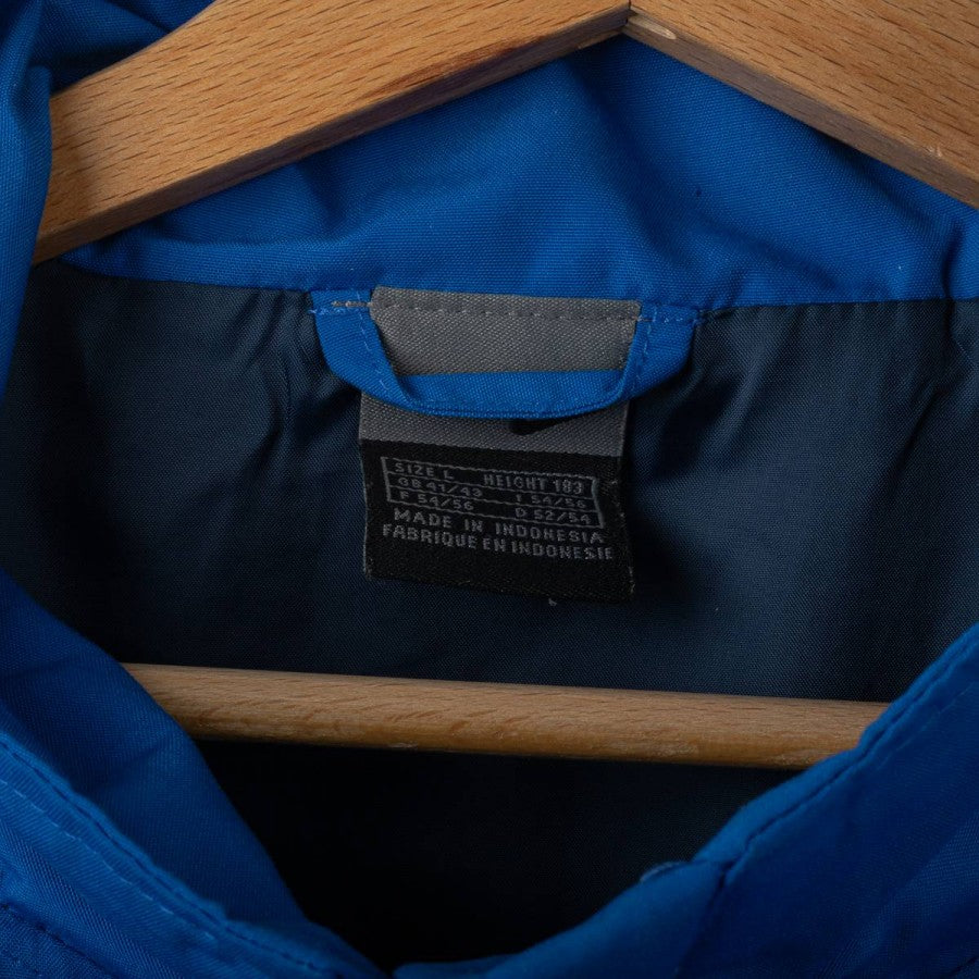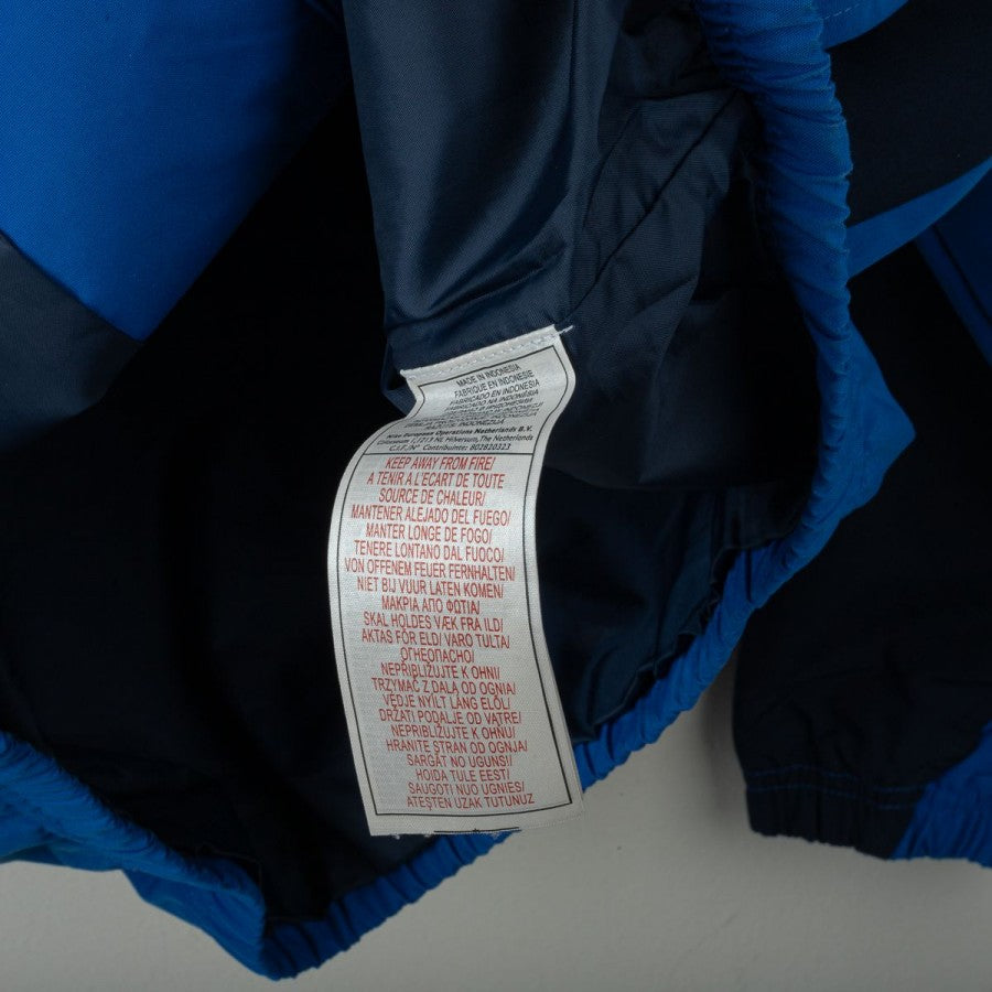 Giacca Inter Nike Pirelli 2003/2004, realizzata dallo sponsor tecnico Nike e caratterizzata dal logo societario sul petto e la presenza dello sponsor commerciale Pirelli sulla manica. Il capo presenta una grafica dinamica bicolore nero e blu, con inserti in contrasto e zip frontale. Taglia L visibile in etichetta interna.