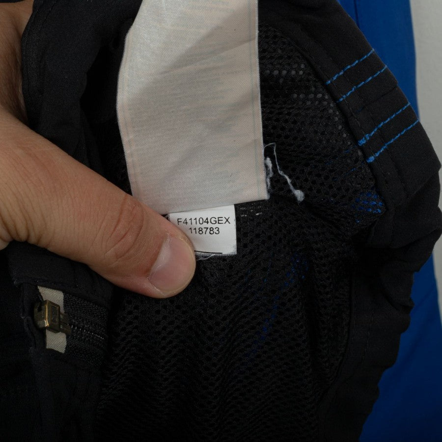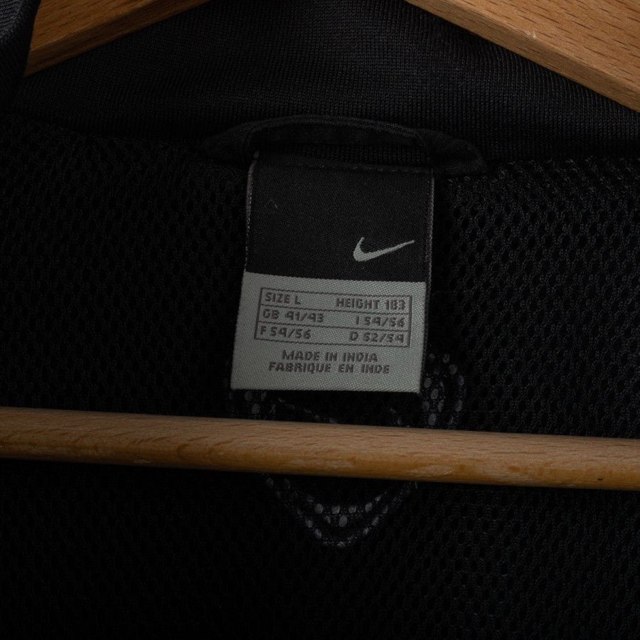 Giacca ufficiale dell'Inter della stagione 2004/2005, realizzata da Nike. Il modello presenta una combinazione cromatica distintiva nero e blu con zip centrale e tasche laterali. Sul petto sono presenti il logo Nike e lo stemma del club, mentre sulla manica sinistra è presente la scritta “INTER”. Taglia L come indicato all'interno del colletto.
