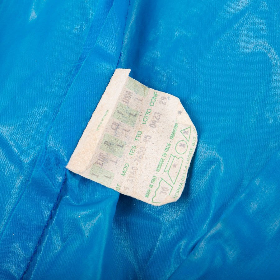 Giacca Inter Uhlsport 1990/1991. Tale periodo fu importante per l'Inter perchè il club allenato da Giovanni Trapattoni riuscì a conquistare la sua prima Coppa Uefa, tra l'altro primo titolo continentale dai trionfi di Helenio Herrera. Etichetta interna con taglia L.