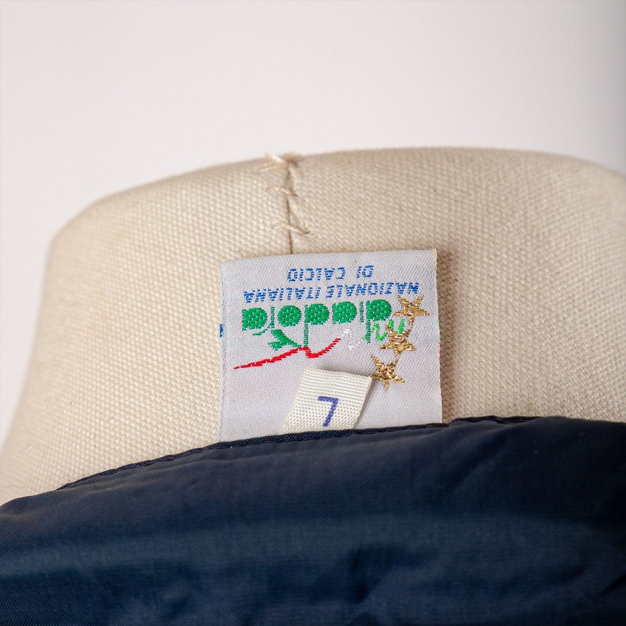 Giacca Diadora Italia. Modello full zip con bottoncini a pressione. Di colore blu, con inserti bianchi e giallo fluo, la giacca antivento è completa di tasche laterali con zip e di un comodo cappuccio con laccetto a scomparsa nel collo. Sulla parte frontale è cucita la patch dell'Italia lato cuore e, sulla destra è applicato lo sponsor tecnico Diadora. Laccetto in vita per una migliore vestibilità.