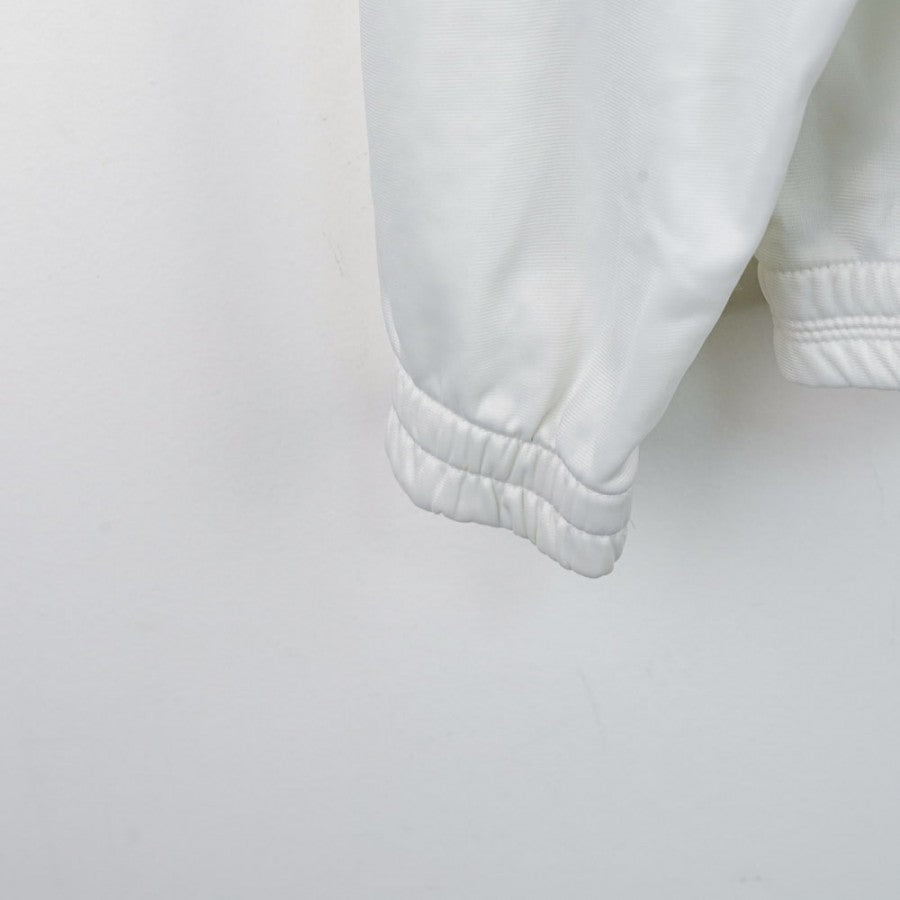 Giacca ufficiale della Nazionale Italiana, prodotta da Diadora per i Mondiali di Italia '90. Caratterizzata da un design iconico con base bianca e dettagli blu navy, presenta una grafica ispirata al tricolore italiano sulla parte frontale. Lo stemma FIGC con tre stelle è cucito sul petto, mentre il logo Diadora è ricamato accanto. Un capo storico che rievoca l'entusiasmo di un Mondiale giocato in casa.