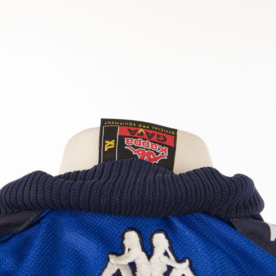 La Tuta realizzata da Kappa per la stagione 2000/2001 si presenta in ottime condizioni, il tessuto conserva le caratteristiche originarie, non presenta opacità e decolorazioni, né macchie o aloni. Taglia XL.