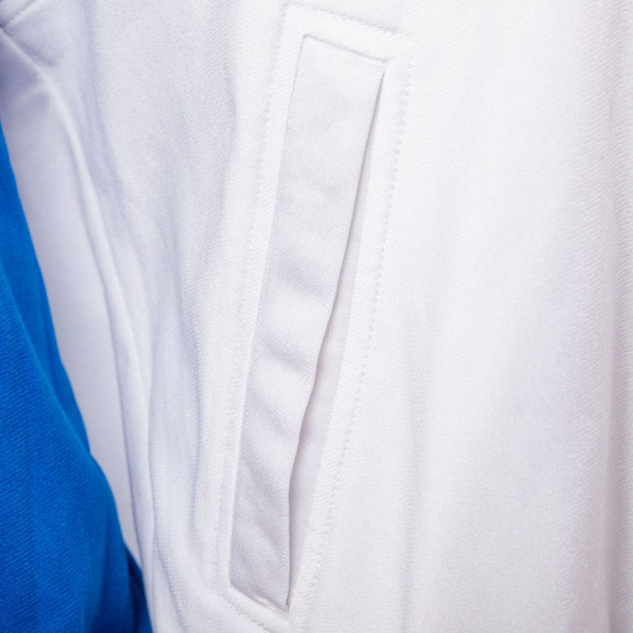 Giacca bianca, con chiusura full zip, braccio destro in azzurro e quello sinistro in bianco con i colori del tricolore italiano. Fascione azzurro orizzontale sul petto che percorre l'intera circonferenza.