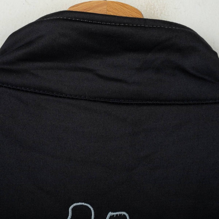 Giacca da bambino della Juventus prodotta da Kappa per la stagione 1994/1995. Modello full zip con tasche laterali, caratterizzato dai colori grigio, nero e bianco. Logo Kappa ricamato in bianco sul petto destro e grandi scritte "JUVENTUS" cucite al centro, con sponsor commerciale Danone applicato sopra. Sulle maniche banda con loghi Kappa ripetuti e stemma Juventus ricamato con due stelle sul braccio. Sul retro maxi logo Kappa ricamato. Vestibilità regolare. Taglia L (bambino).