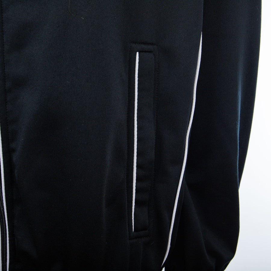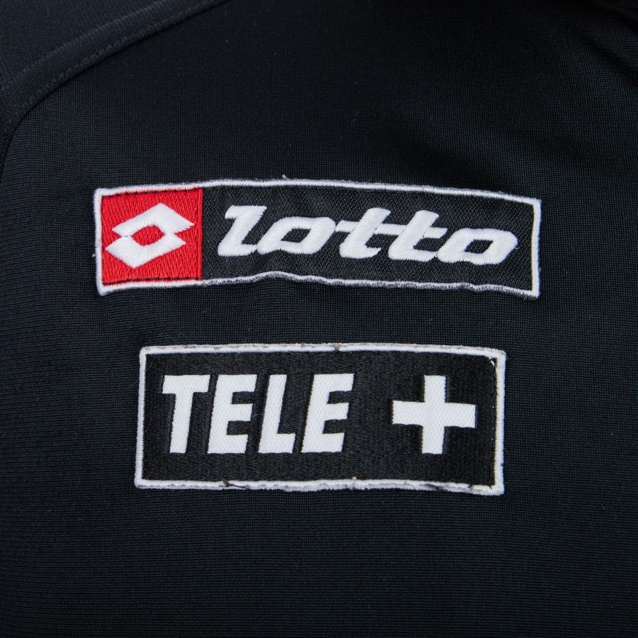 Il prodotto si può ben vedere dalle diverse foto. La giacca è a maniche lunghe, ha una lunga cerniera al centro, due tasce verso i fianchi ed è contraddistinta principalmente dal colore nero, anche se ci sono degli inserti in colore bianco; in alto a sinistra troviamo il logo del club, mentre dalla parte opposta sono applicate le patch di "lotto", sponsor tecnico, come detto sopra, e di TELE+, lo sponsor commerciale della Juventus; inoltre, sulle maniche sono applicate due fasce circolare bianche a mò di bracciali, e su una di queste, la sinistra, c'è il logo nero di Lotto.