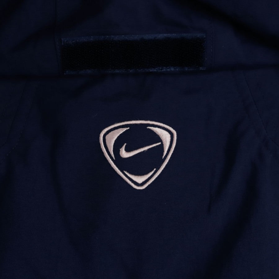 Giacca ufficiale della Juventus, stagione 2004/2005, prodotta dallo sponsor tecnico Nike con sponsor commerciale Sky Sport. La giacca è di colore blu con dettagli grigi, dotata di cappuccio e chiusura a zip. Sul petto sono presenti il logo Nike, il logo Juventus con le due stelle e lo sponsor Sky Sport. Sul retro, il grande logo Sky Sport domina la parte centrale. Taglia M.