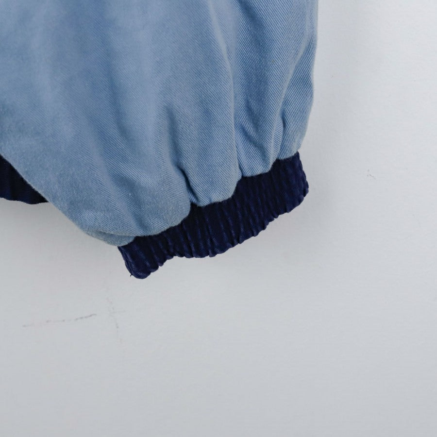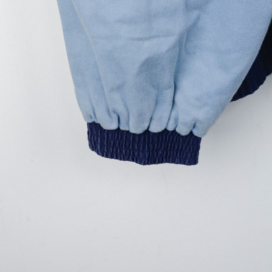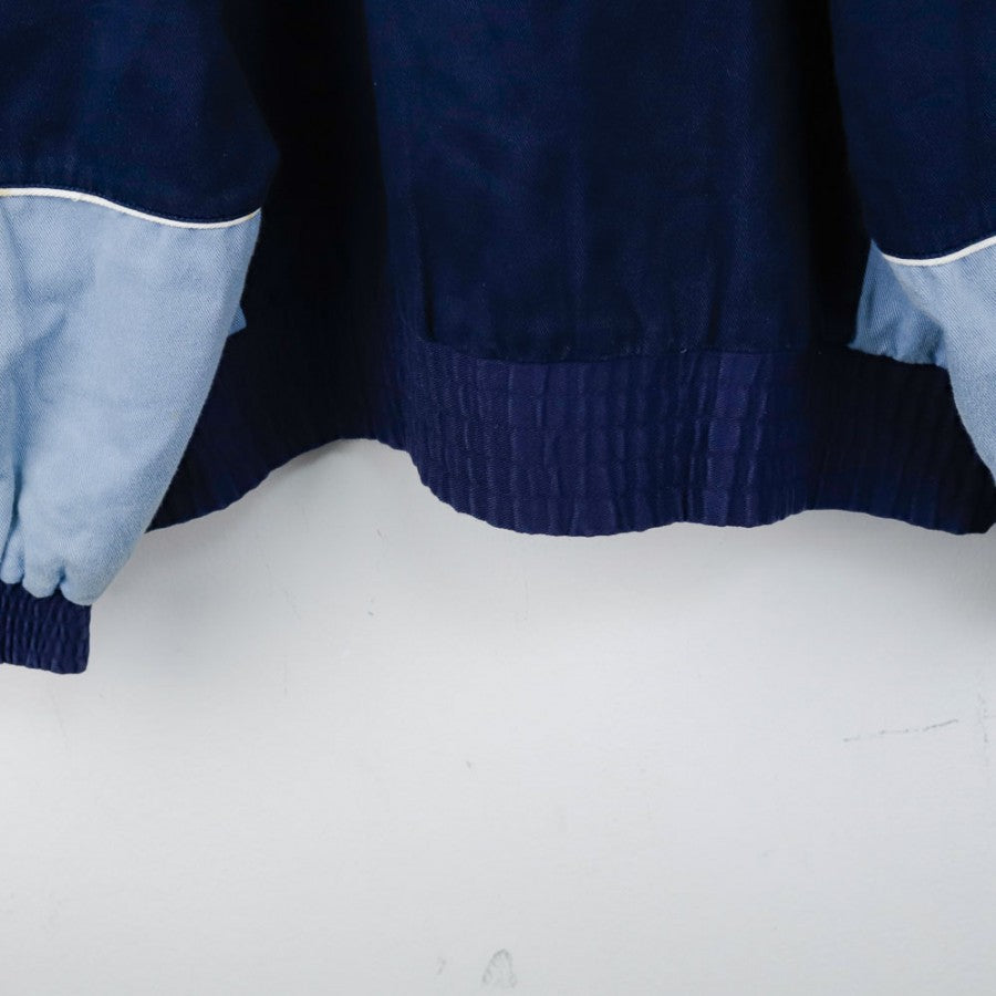 Giacca ufficiale della Lazio, stagione 1992/1993, realizzata dallo sponsor tecnico Umbro. Questo modello invernale, di colore blu scuro con maniche e dettagli azzurri, presenta una chiusura a zip frontale e un design caratterizzato da linee semplici ma eleganti. Il logo Umbro è ricamato sul petto, mentre non sono presenti sponsor commerciali, rendendo il capo un autentico esempio dello stile minimalista dell'epoca. La taglia riportata è L, ideale per i collezionisti di abbigliamento vintage.